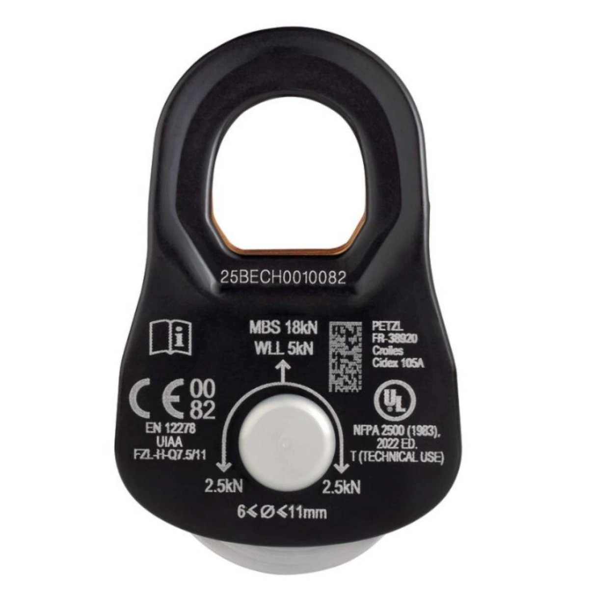 Petzl Rescue S — это сверхпрочный ролик с высокой эффективностью, специально разработанный для профессиональных спасателей, работы с тяжелыми грузами и интенсивного использования. Его ключевой особенностью является большой диаметр шкива, установленного на герметичных шарикоподшипниках, что обеспечивает исключительный коэффициент полезного действия (КПД 95%). Подвижные щеки позволяют быстро вщелкнуть ролик в любом месте веревки, а их форма позволяет использовать ролик в системах с самохватывающими узлами (например, прусик).