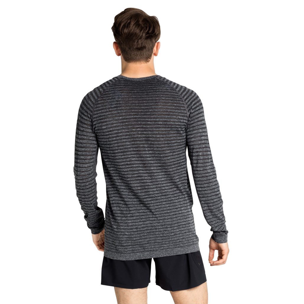 Odlo Essentials Seamless LS — мужская футболка для бега изготовлена из мягкой эластичной ткани, которая обеспечит улучшенное управление влагой и вентиляцию, чтобы вы чувствовали себя комфортно даже в жаркую погоду. Благодаря устойчивой, 100% органической технологии ZeroScent, материал защищен от бактерий, вызывающих запах, и сохраняет ощущение свежести даже после использования в течение всего дня. Бесшовная конструкция повышает комфорт и уменьшает натирание. Привлекательная градиентная графика и логотип со светоотражающими деталями делает футболку более стильной.