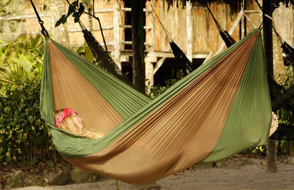 Нейлоновый материал популярен в походе, экстремальных путешествиях и приключениях. Когда гамак рассматривается как аналог палатке, первичен его вес. Необходимо, чтобы он был очень компактным и моментально высыхал, то нейлон — хорошая альтернатива. Материал мало подвержен гниению и плесени.