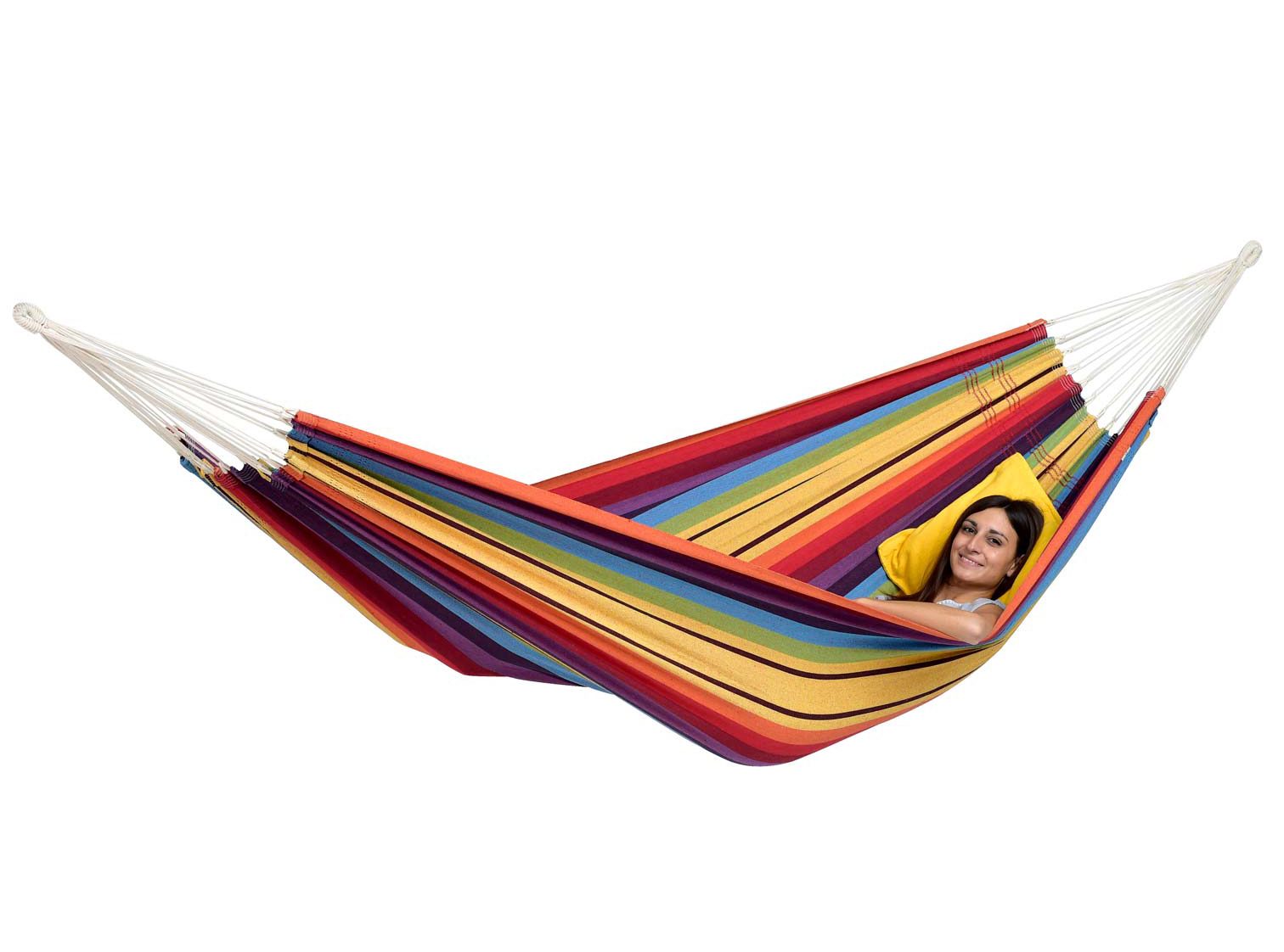 Amazonas Barbados Rainbow – экологически чистый, сделан из переработанного хлопка. Соткан и окрашен вручную в Бразилии. Хлопковые гамаки считаются одними из самых лучших — они приятны для тела, прочны, красивы, легко принимают форму лежащего и поэтому удивительно удобны. Плотность 400 гр/м и особенная прочность ткани позволяют выдерживать большой вес, длина и ширина гамака обеспечивают необычайный комфорт.