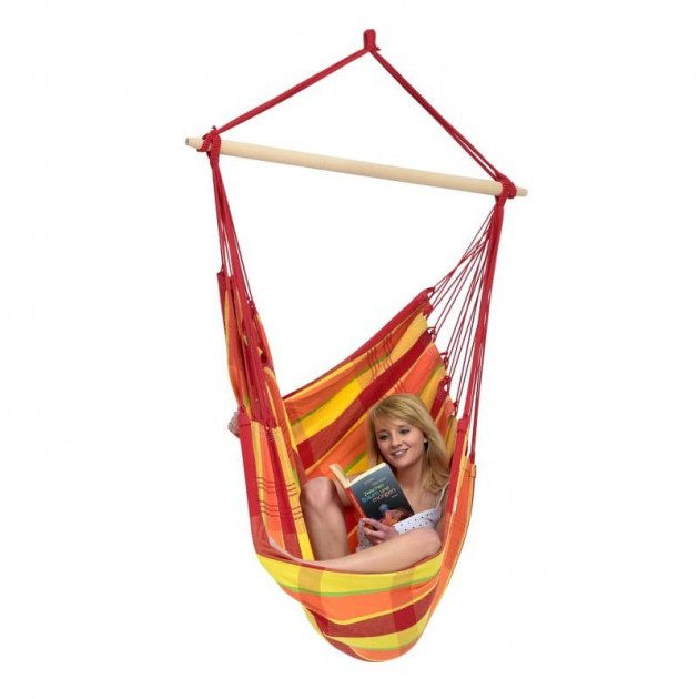 Гамак-кресло Amazonas Brasil Papaya – самое удобное изобретение в мире. Королевский размер этого кресла шириной 1.3 м и длиной 1.6 м поистине может сравниться с большим гамаком, в нем можно сидеть вдвоем. Края, прошитые четырьмя строчками и ткань плотностью 400 g/m² гарантируют удобство, стабильность и прочность. Кроме того, кресло закреплено на прочной, 40 мм деревянной балке длиной 1.1 м, спроектированной специально для правильного распределения нагрузки и предотвращения скольжения крепежных веревок на середину. Таким образом, в кресле удобно читать, дремать или развалиться наслаждаясь приятной музыкой.