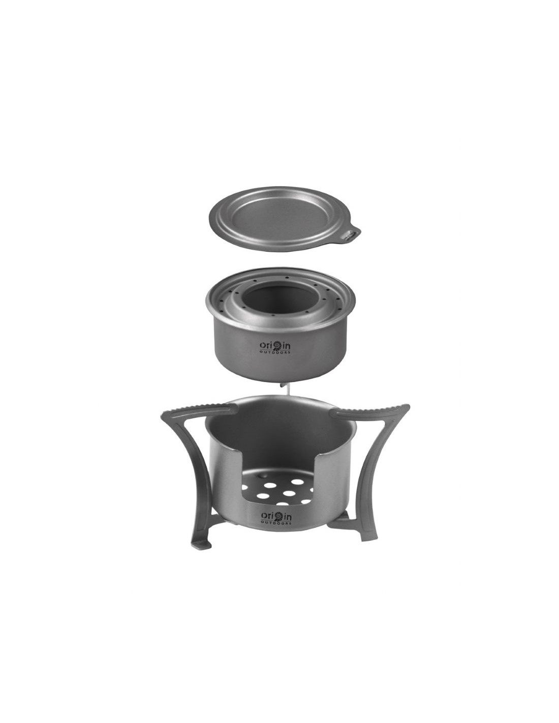 Origin Outdoors Titanium Stove Combo — легкий комплект, состоящий из титановой спиртовой горелки и небольшой тростниковой щепочницы. Комплект занимает мало места и весит всего 106 граммов. Вы можете использовать его со спиртом, твердым топливом, а также небольшими ветками. Таким образом, у него есть три разных функции в одном.
