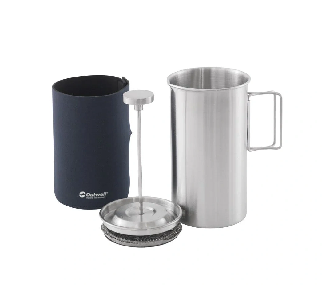Outwell Java Coffee Press — прочный и компактный френч‑пресс объёмом 1 л, выполненный из нержавеющей стали с внешним покрытием из неопрена. Идеально подходит для приготовления насыщенного кофе на природе, в походе или даже дома. Благодаря складывающейся ручке он занимает минимум места в рюкзаке, а колба в неопрена помогает сохранить тепло напитка дольше.