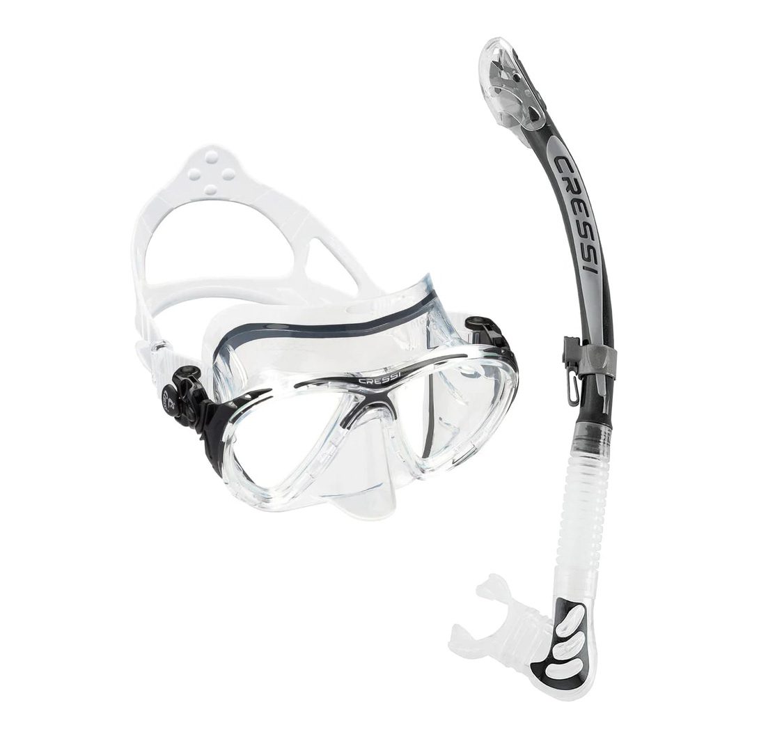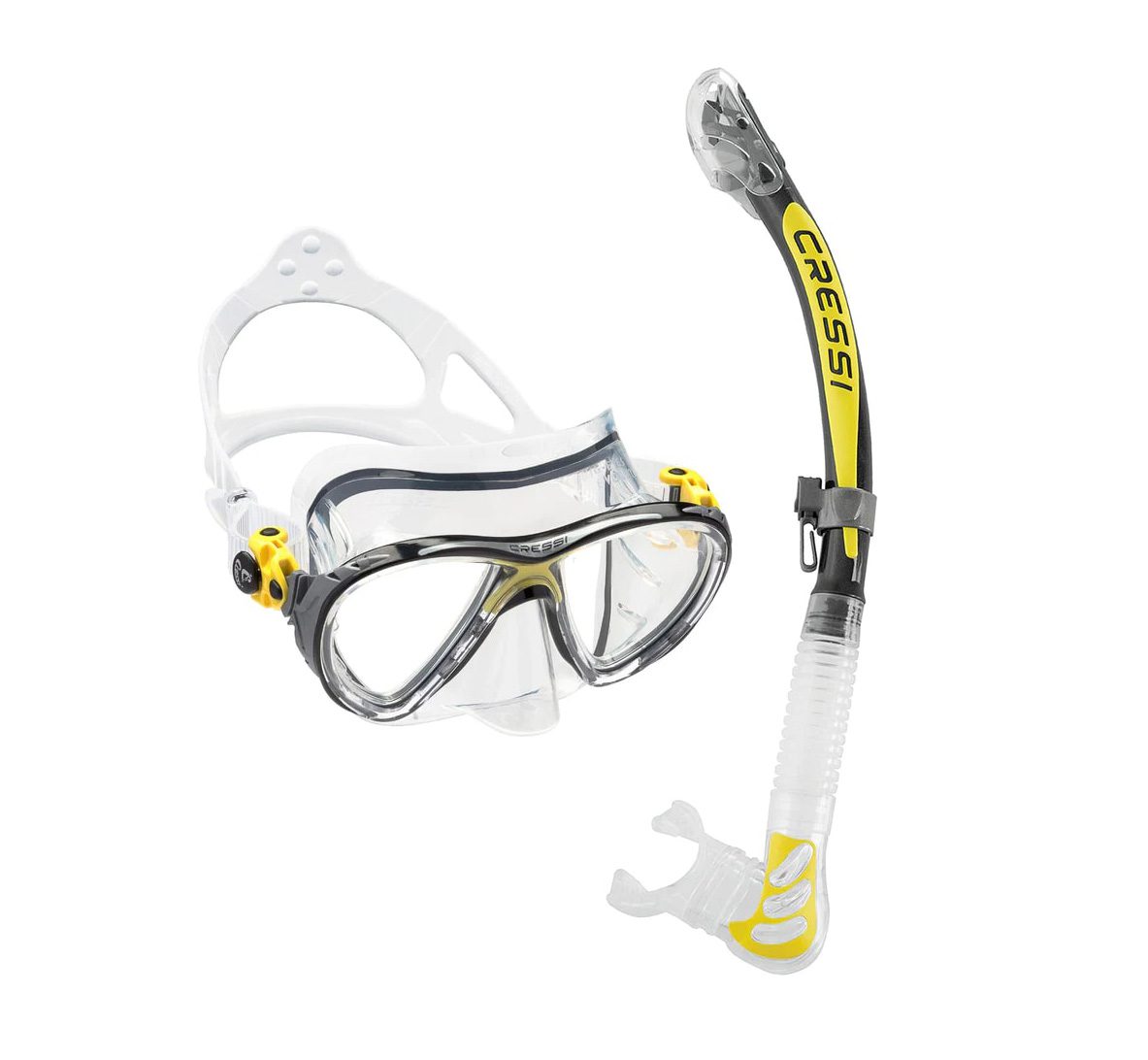Cressi-Sub Big Eyes Evolution — маска для снорклинга. Линзы в форме перевернутой капли имеют «инвертированный» наклон и расположены на небольшом расстоянии к глазам ныряльщика. Это обеспечивает небольшой подмасочный объём и отличный обзор во всех плоскостях (особенно в нижней полусфере). Обтюратор из мягкого силикона и второе гидроизолирующее кольцо плотно прилегает к лицу и не вызывает раздражений кожи при длительном использовании. Фланец подводной маски очень тонкий и практический незаметный во время носки. Ремешок быстро и просто регулируется двумя наклонными застёжками.