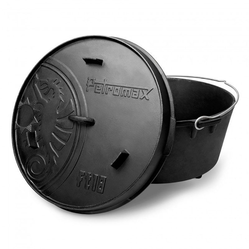Чугунные котелки существуют с 18 века. Уже тогда ценились уникальные свойства чугуна. Котелок Petromax обладает удивительными характеристиками — его особая структура поверхности эффективно сохраняет и распределяет тепло. Предварительно обработанная поверхность (приправленная отделка) делает первую приправу ненужной, и можно сразу использовать прочную жаровню. На природе его используют на открытом огне или с древесным углем и брикетами. Специально разработанная крышка, может использоваться как сковородка или тарелка. Поднятый ее край позволяет размещать угли или древесный уголь также на жаровне. Таким образом, Petromax Dutch Oven нагревается со всех сторон и подходит, например, для выпечки хлеба.