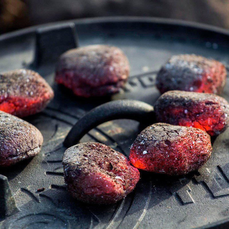 - Завышенные края крышки позволяют разместить на ней жар или древесный уголь, равномерно распределяя таким образом тепло.