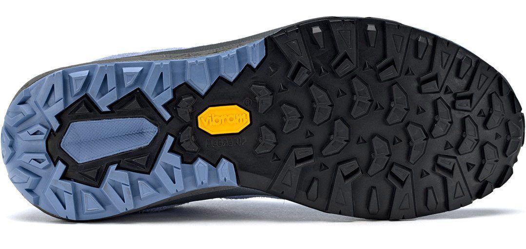 - Vibram® — подошва новой конструкции. Слой из формованного EVA обеспечивает оптимальную поддержку и комфорт. Полиуретановая вставка в области пятки улучшает амортизацию.