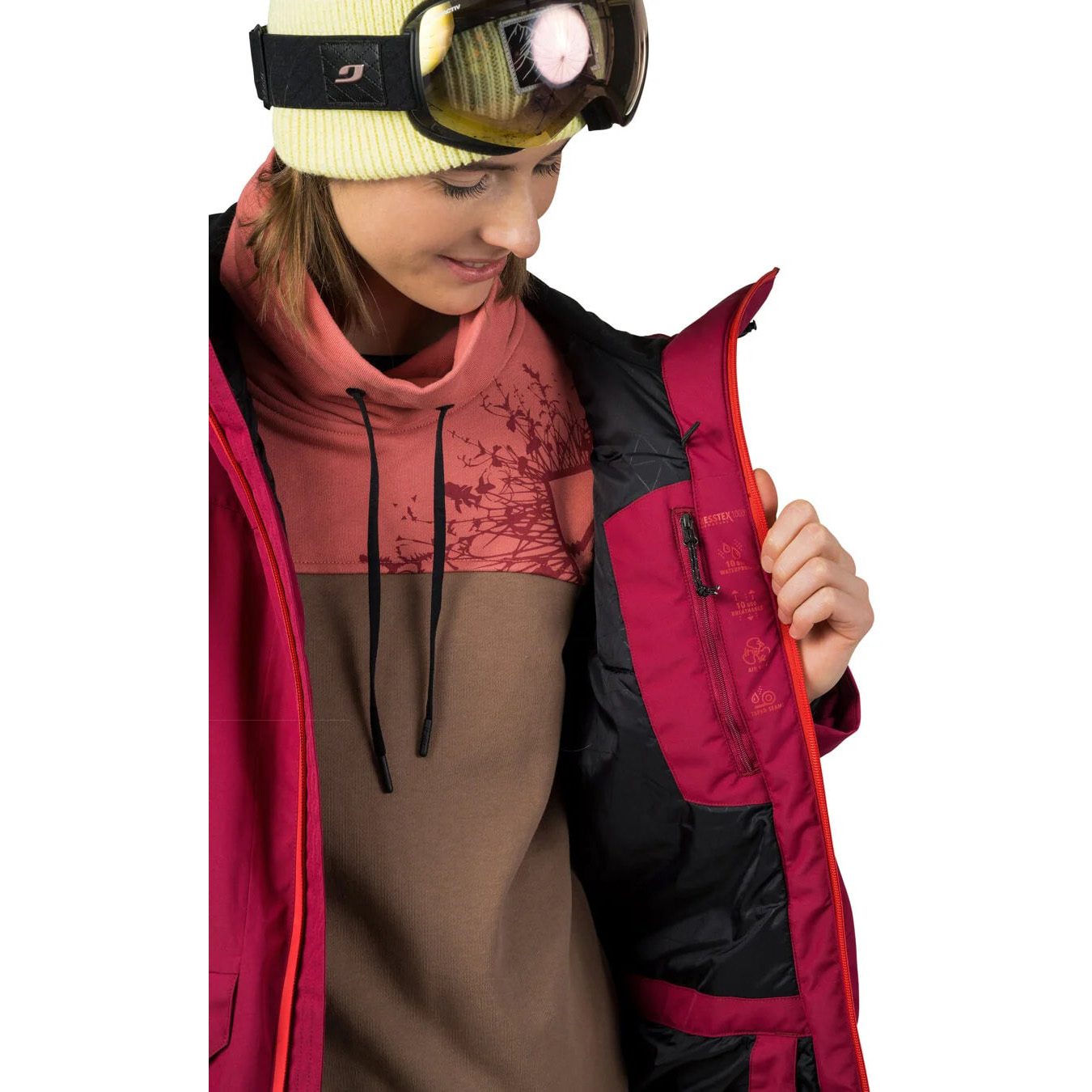 Материал Resstex 10 000 в сочетании с полыми волокнами Duratherm Classic обеспечивает максимальный комфорт в любых условиях. Примечательными особенностями куртки являются снежная юбка на талии, карман для очков, водонепроницаемые молнии и карман для ски-пасса. Нижний край имеет удобную регулировку, а манжеты рукавов регулируются с помощью липучек.