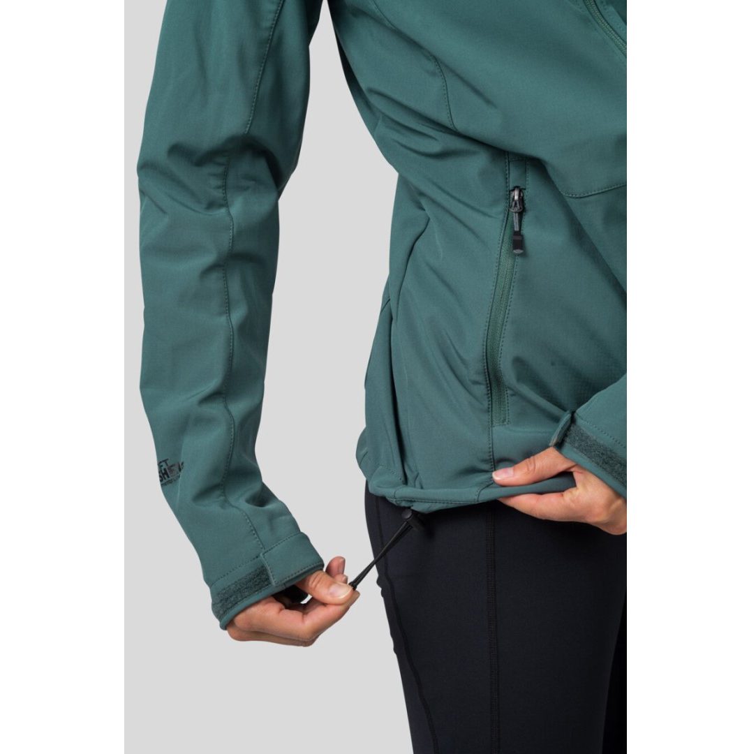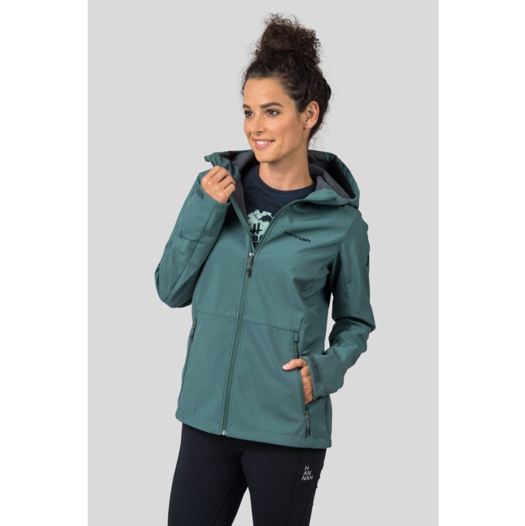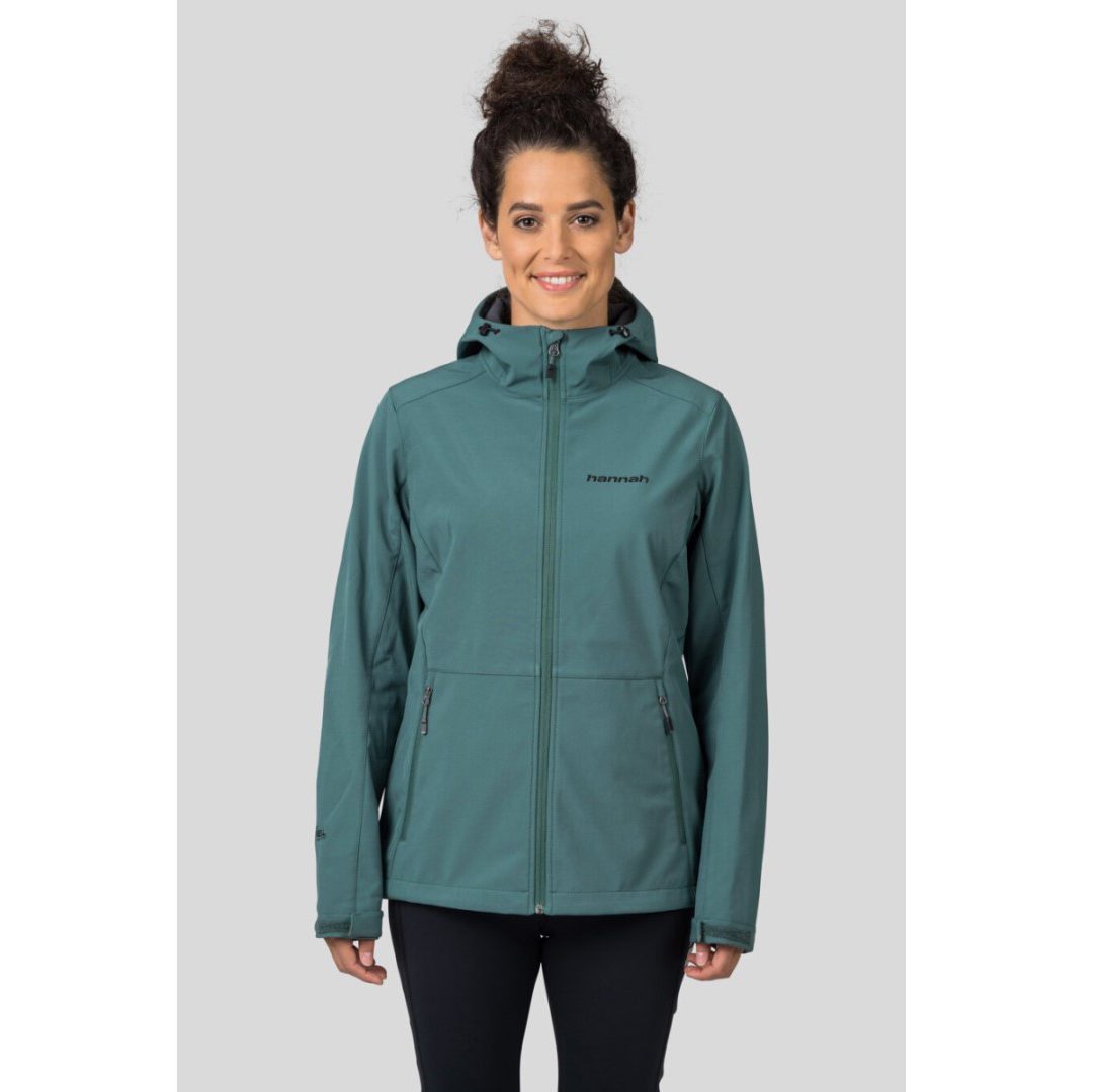 Hannah Zury — женская мембранная куртка изготовлена из водонепроницаемого, ветрозащитного и дышащего материала Softshell Grid с мембраной 8000 и обработкой Teflon Eco Lite. Куртка имеет регулируемый капюшон и нижний край, а также формованные рукава с липучками. Имеет два основных кармана и один нагрудный карман, все на молнии. Свободная посадка удобна и не стесняет движений.