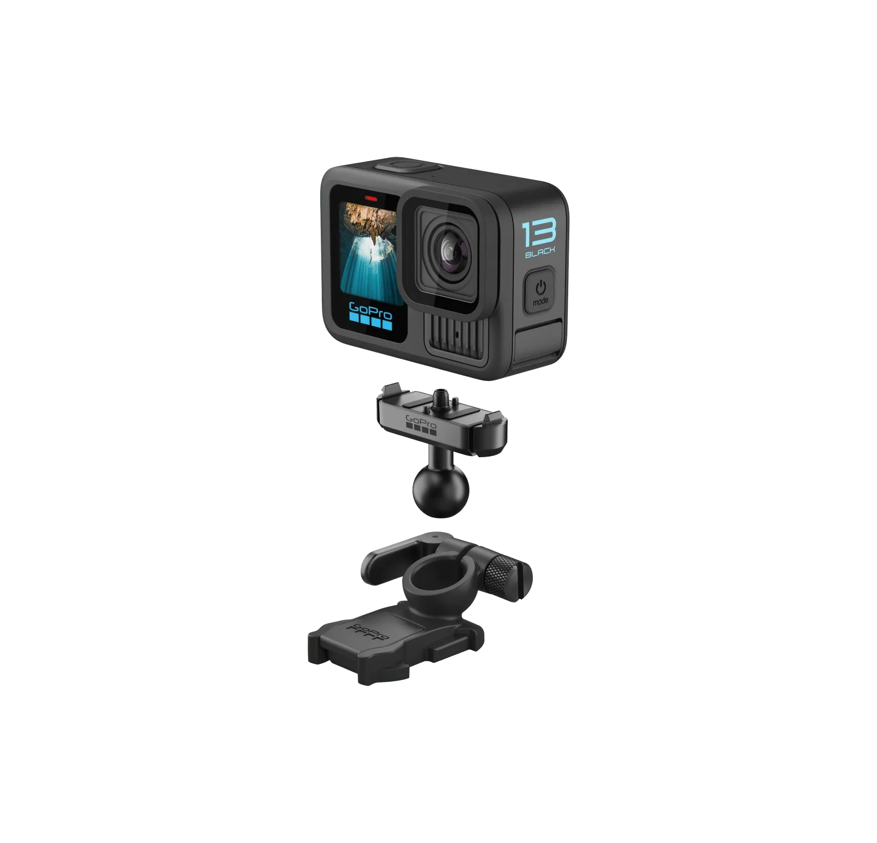 GoPro Magnetic Latch Ball Joint Mount — удобное шарнирное крепление с магнитной защелкой, которое позволяет легко изменять угол наклона и поворота HERO13 Black, а также быстро переключаться между креплениями GoPro* без необходимости использовать винты.