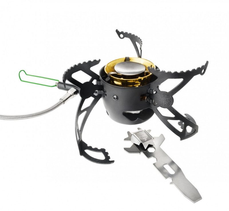 - Интегрированная магнитная игла для эффективной прочистки форсунки, которой можно воспользоваться даже в процессе приготовления пищи (просто проведите магнитным мультитулом под горелкой несколько раз).
