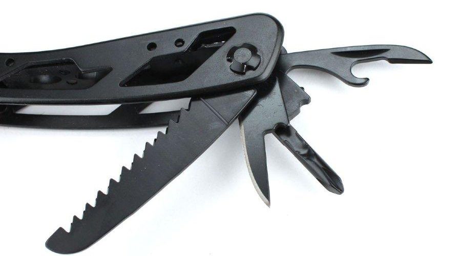 Все компоненты мультитула изготовлены из качественных материалов, а сам инструмент аккуратно собран. Металл покрыт стойкой порошковой краской черного цвета, что делает дизайн инструмента более оригинальным и дополнительно защищает его от ржавления.