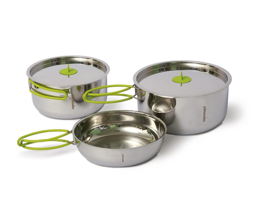 Pinguin Duo steel S — набор посуды для приготовления пищи в походных условиях, состоящий из двух кастрюль с крышками и сковороды. Складные ручки с термоизоляционной силиконовой оплёткой уберегут руки от ожогов. Набор компактно складывается и удобен для транспортировки. Прочный, легко моется, будет исправно служить своим владельцам много лет.