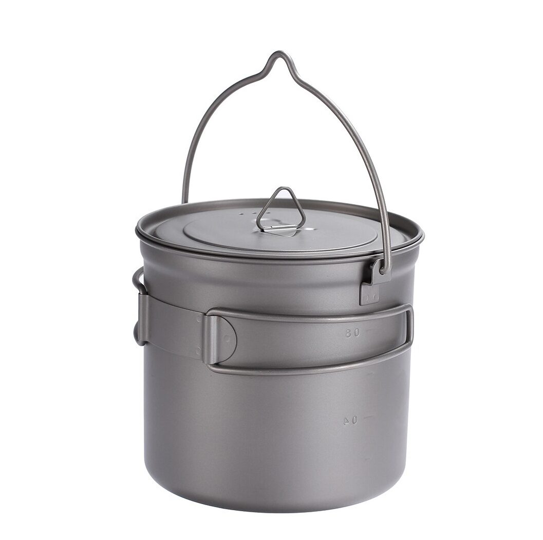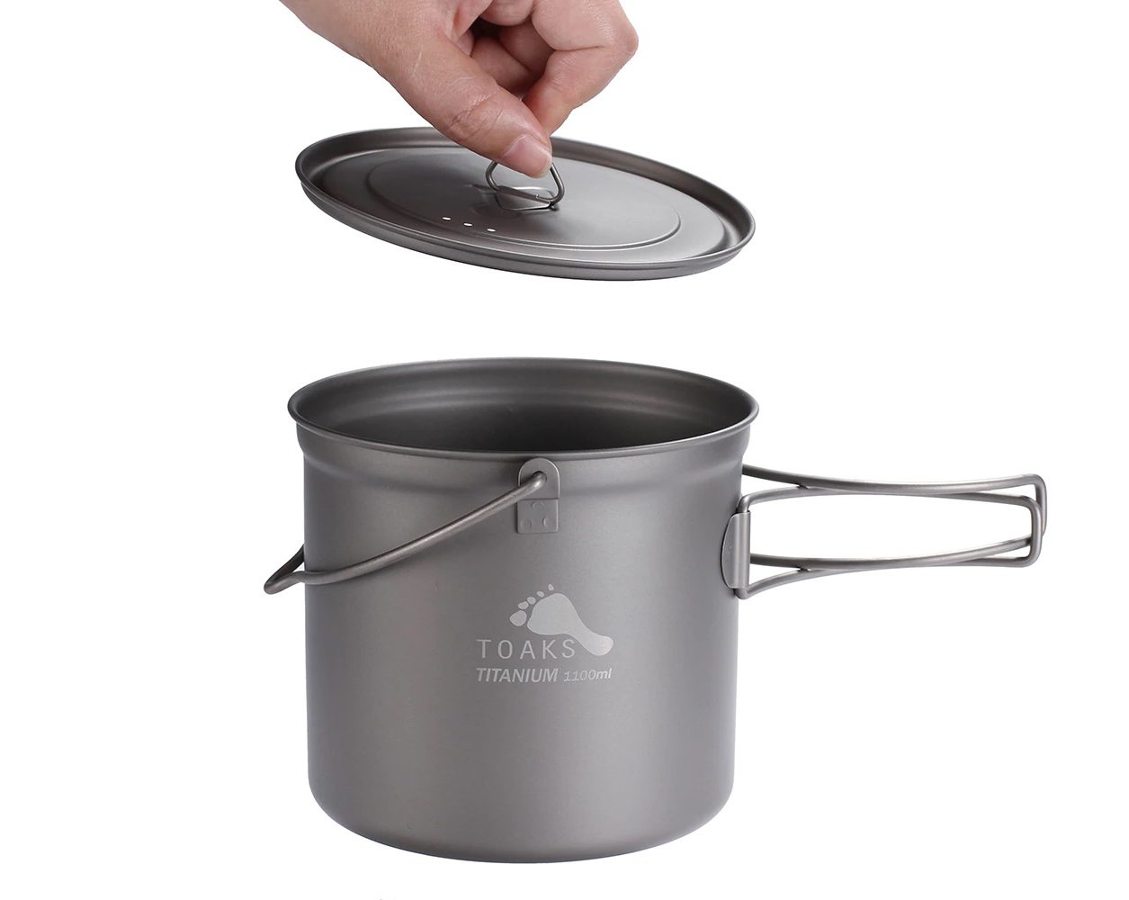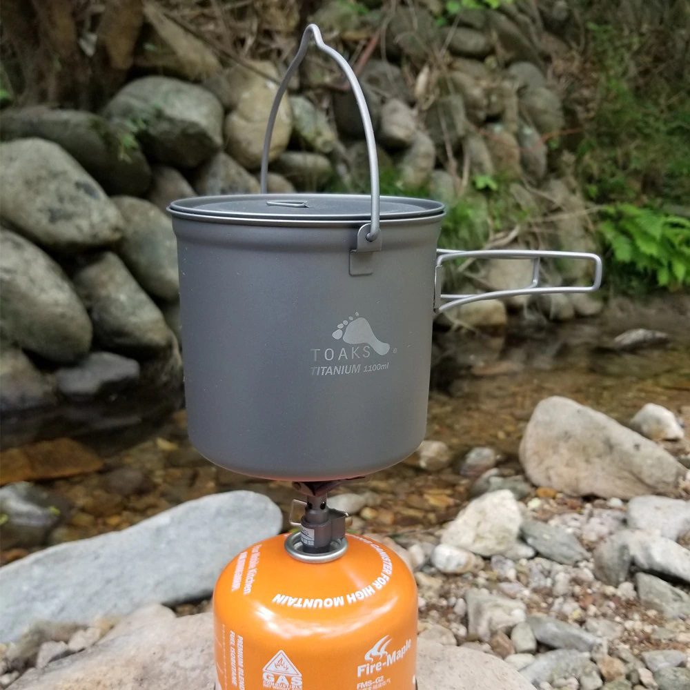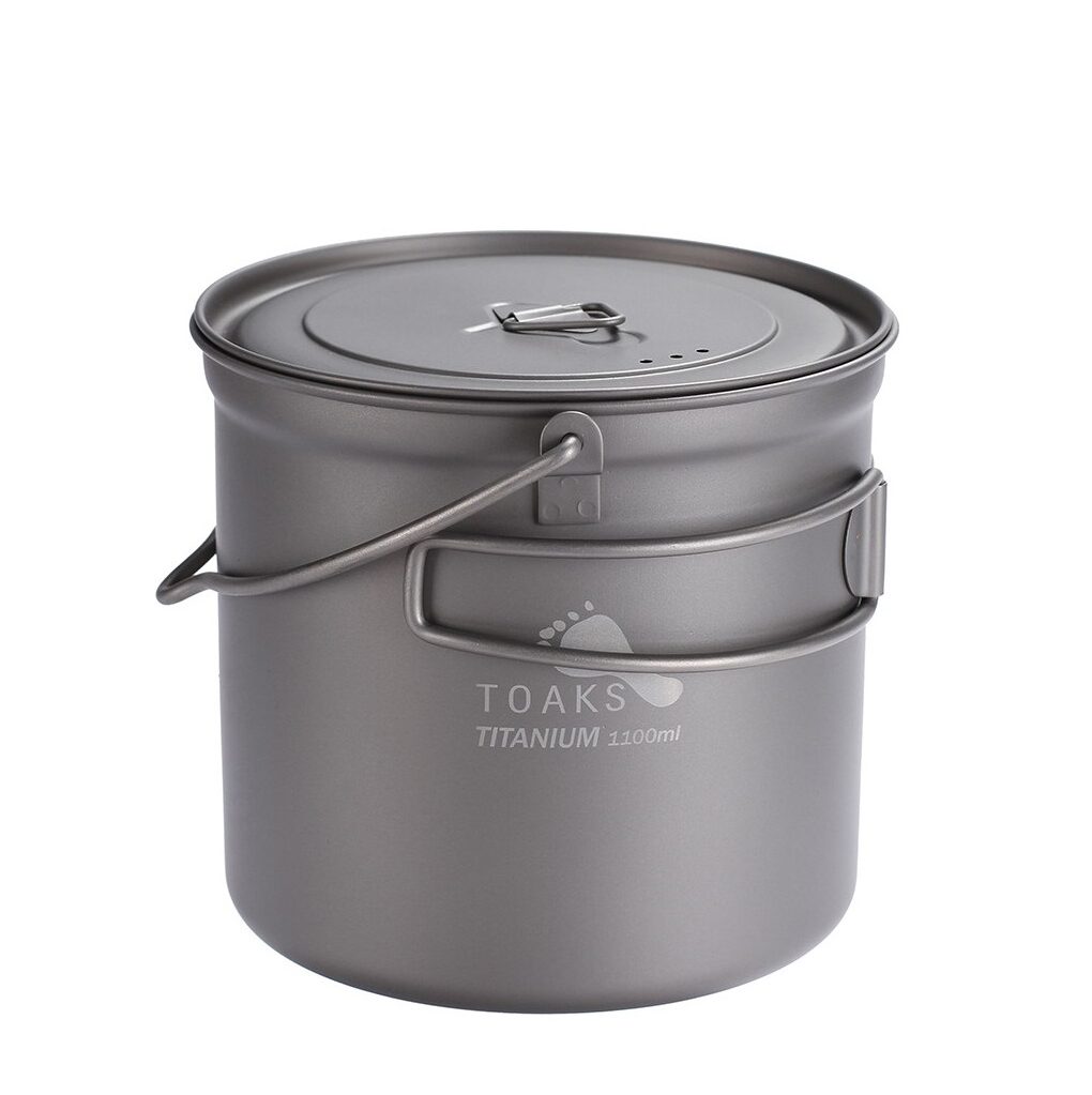 Toaks Titanium 1100 ml — титановый котелок с ручкой для подвешивания, идеальный выбор для туристов, которые любят путешествовать налегке, сократить расход топлива и время приготовления пищи.