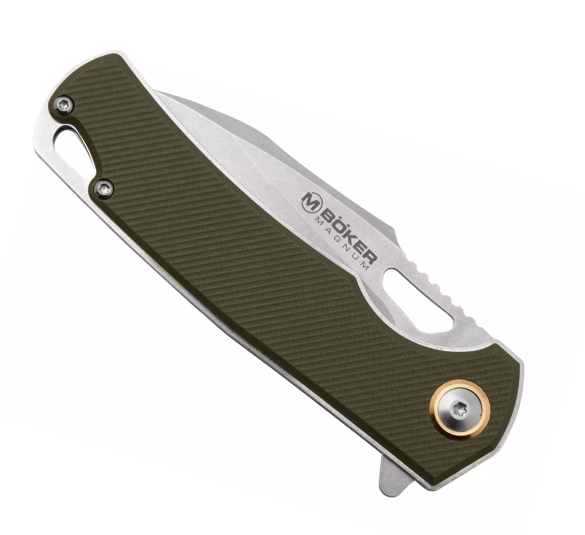 Boker Magnum Skeksis — эксцентричный карманный нож с хорошими характеристиками. Шариковый подшипник и клювовидное лезвие уступают Skeksis по форме и эффективности, так что даже сложные работы по резке выполняются с легкостью. Папка открывается либо флиппером, либо отверстием для большого пальца, а внутренний замок из нержавеющей стали и выступы на задней стороне лезвия обеспечивают бескомпромиссную безопасность работы. Текстурированные зеленые чешуйки G10 напоминают кожу рептилий и обеспечивают удобный захват. Визуальным акцентом является латунное кольцо, обрамляющее винт оси лезвия. С отверстием для темляка и застежкой-молнией