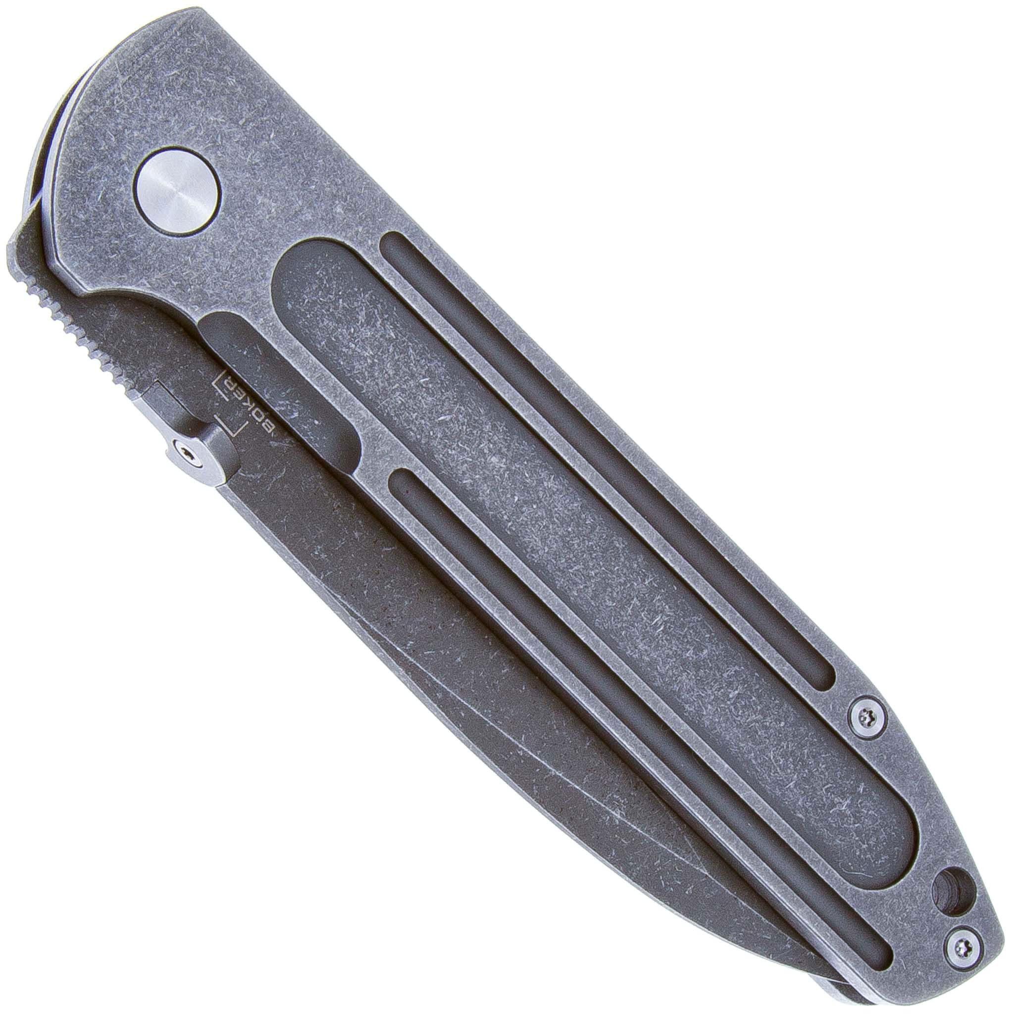 Boker Plus Evade — универсальный EDC нож, пригодный для большинства повседневных работ. Листовидный клинок оснащён шпеньком. Рукоять выполнена из стали и имеет покрытие stonewash, как и сам клинок, что придаёт ножу брутальный вид. Рукоять имеет рельефные выемки, клипсу и отверстие для темляка.