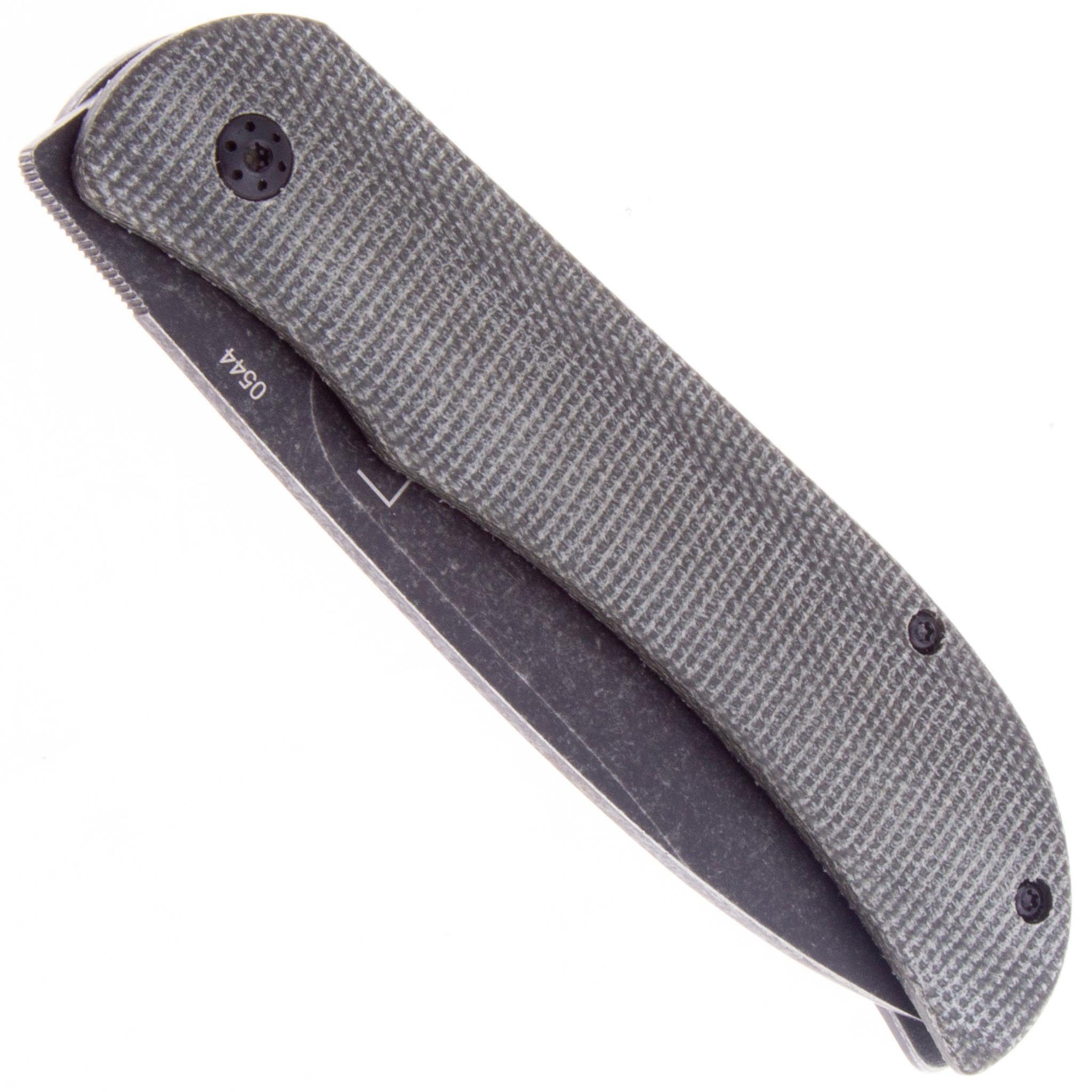 Рукоять выполнена из микарты — это композитный материал на основе синтетических смол и ткани либо плотной бумаги. Популярность микарты как материала для рукояти обусловлена рядом ее особенных свойств, в первую очередь водостойкостью и привлекательным внешним видом. В отличии от дерева, микарта не впитывает посторонние запахи, при этом являясь, как и древесина, материалом теплым для рук.