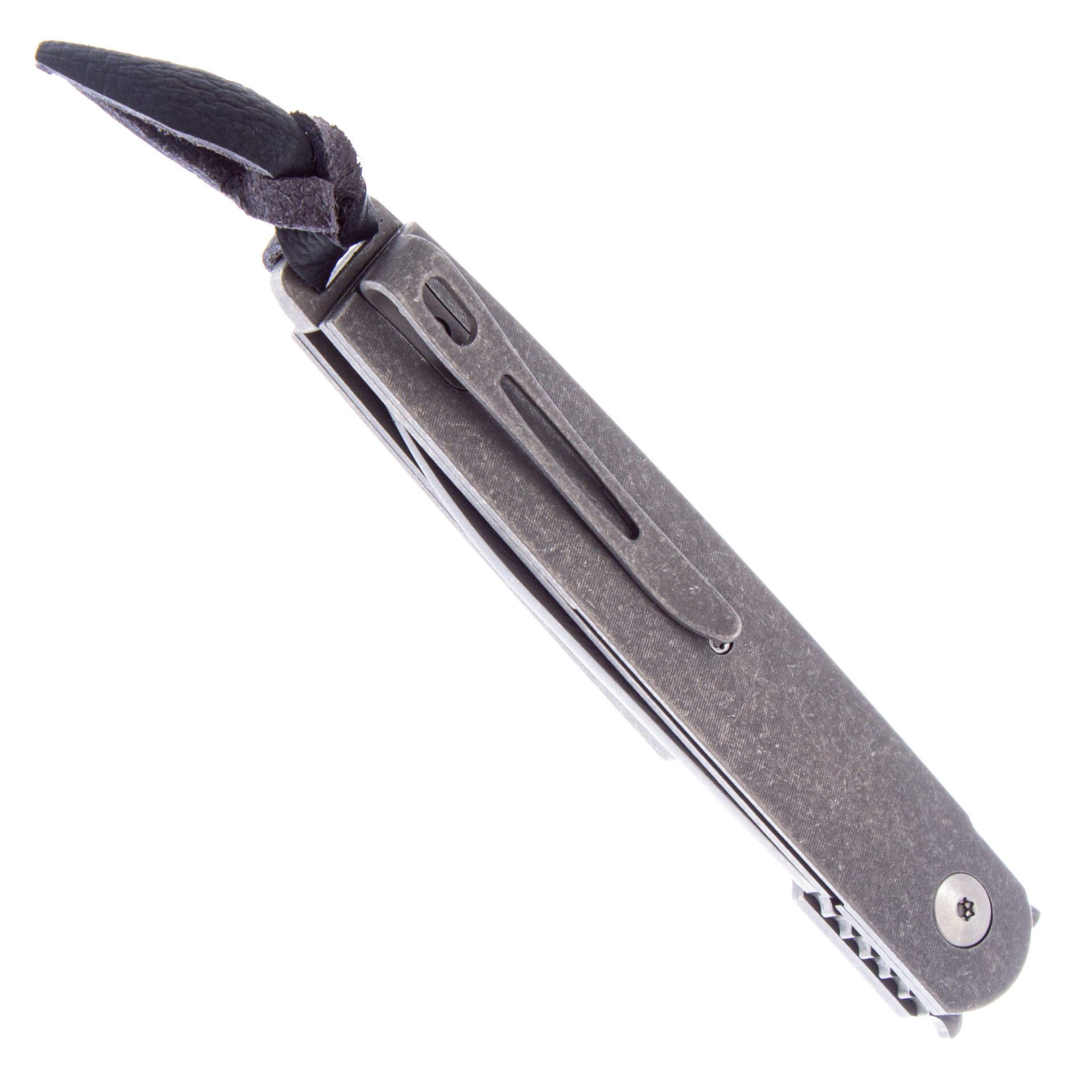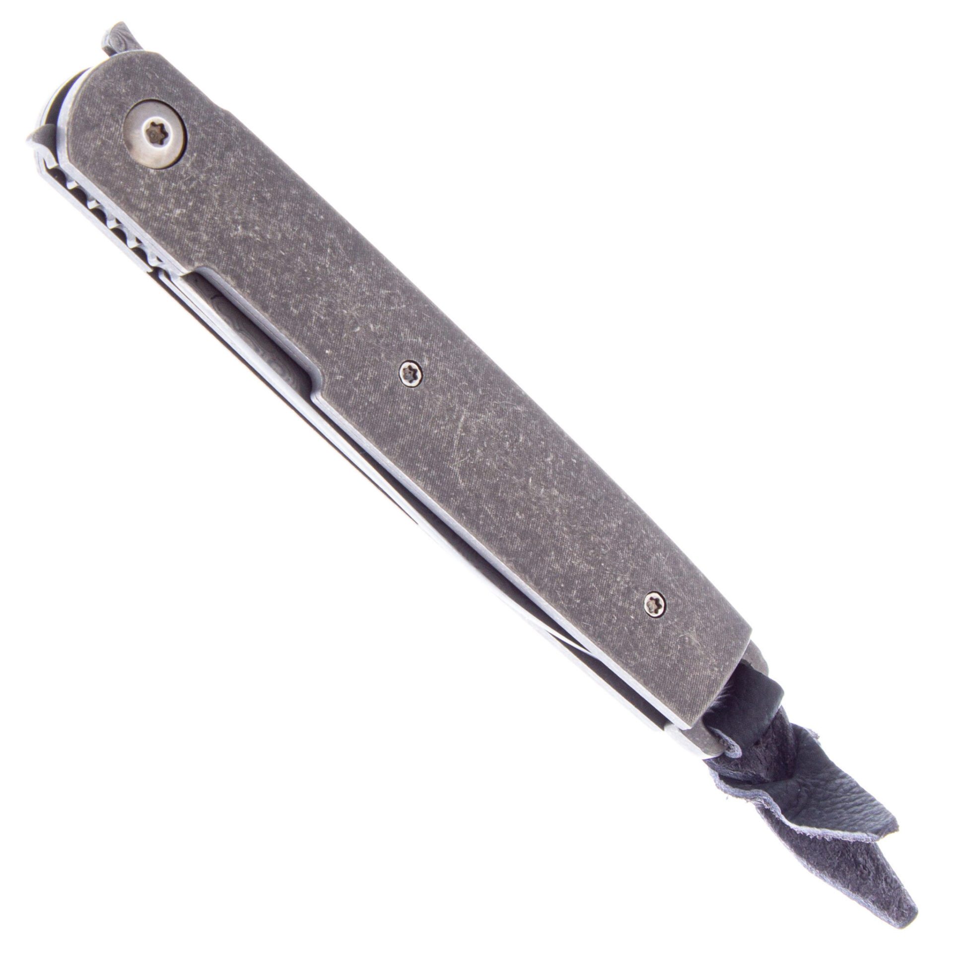 Рукоять изготовлена из титана — материала, имеющего превосходные механические свойства. Он достаточно прочный и жёсткий и обладает небольшим весом в сравнении с другими популярными металлами использующимися в рукоятях ножей.