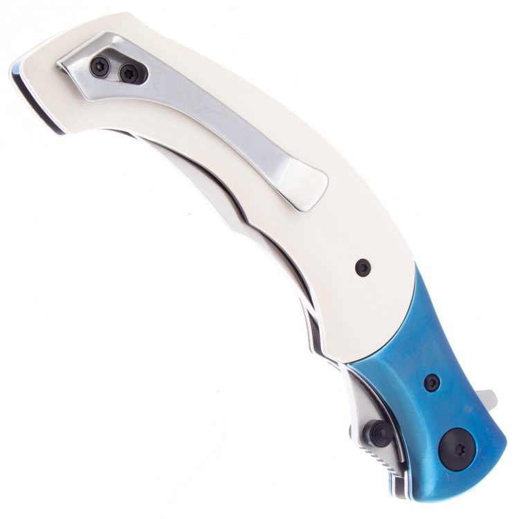 Рукоять изготовлена из микарты — прочного композитного материала на основе тканевых слоев и полимерного связующего. Этот материал не впитывает воду и запахи, устойчив к перепадам температуры и обладает отличными тактильными качествами и декоративными свойствами.