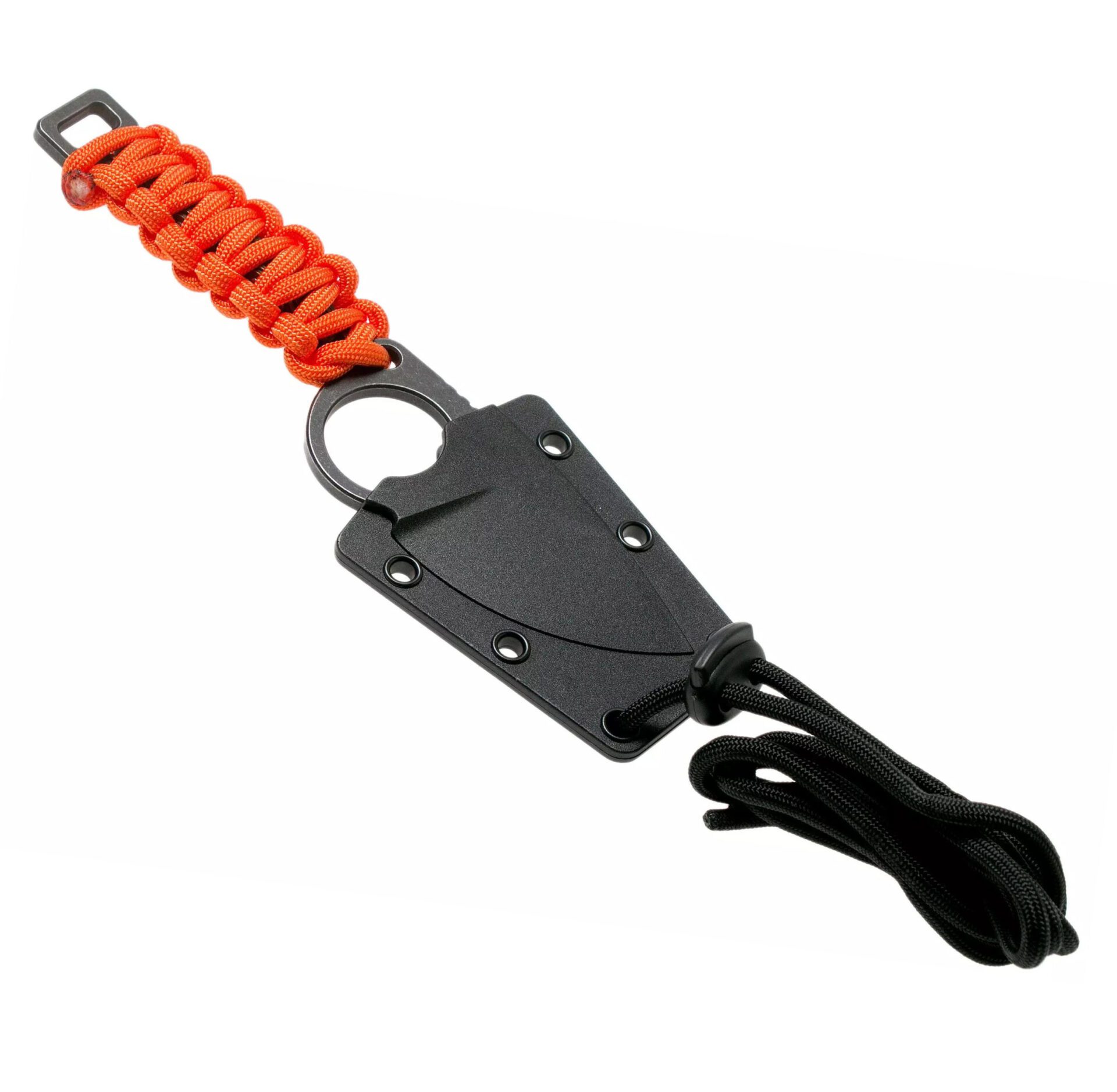 CRKT Tailbone поставляется в пластиковых ножнах и может носиться на шее на шнурке, прикрепляться к поясу или рюкзаку с помощью клипсы.