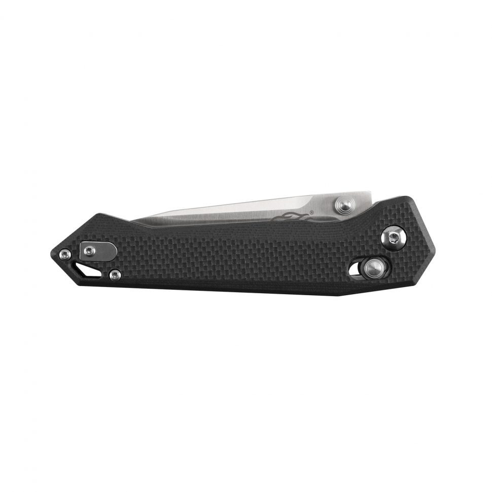 Клинок извлекается из ножа при помощи стандартных стальных шпеньков и фиксируется фирменным замком, именуемым Axis Lock. За скорость и плавность флиппования отвечают осевые подшипники. Форма клинка clip-point является очень удобной для решения самых разных задач в повседневном быту. Достаточно популярны ножи с подобным типом профиля среди охотников и любителей экстремальных видов отдыха.