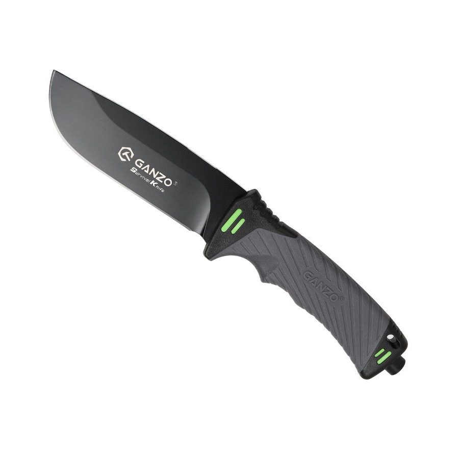 Ganzo G8012-GY — нож для выживания, который стоит взять с собою в путешествие или турпоход, в любую экспедицию. Он создан таким образом, чтобы прийти на помощь своему владельцу даже в самые сложные моменты. Основной материал ножа — сталь марки 7Cr17. Она содержит большое количество углерода и может быть закалена до 57 HRC. При этом, коррозийная стойкость сплава без проблем позволяет использовать его в условиях повышенной сырости. Клинок жестко зафиксирован по отношению к рукоятке, что повышает стойкость ножа к нагрузкам. 11,5 см из общей длины приходится именно на клинок, который имеет прямую заточку. Поверхность лезвия матовая и черная. Помимо того, что такой нож очень стильно выглядит, он вполне может использоваться в тактических целях.