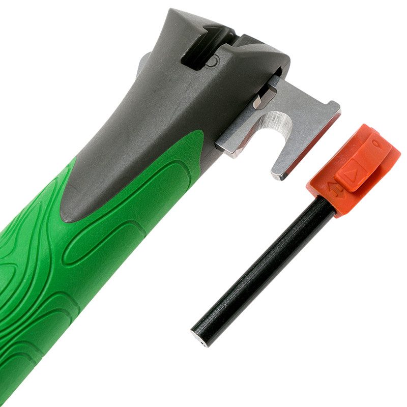 Opinel №12 Explore — многофункциональный инструмент, который пригодится практически в любом виде активного отдыха. А прочное, но податливое к заточке лезвие, при должном уходе сможет прослужить вам очень долго. Дополнительно нож оснащен свистком на торце рукояти, максимальная громкость которого достигает 110 dB. Также, рядом со свистком расположены огниво и крюк, которым можно резать ткань и веревку. С другой стороны, эта рукоятка дополняется отверстием под темляк или карабин.