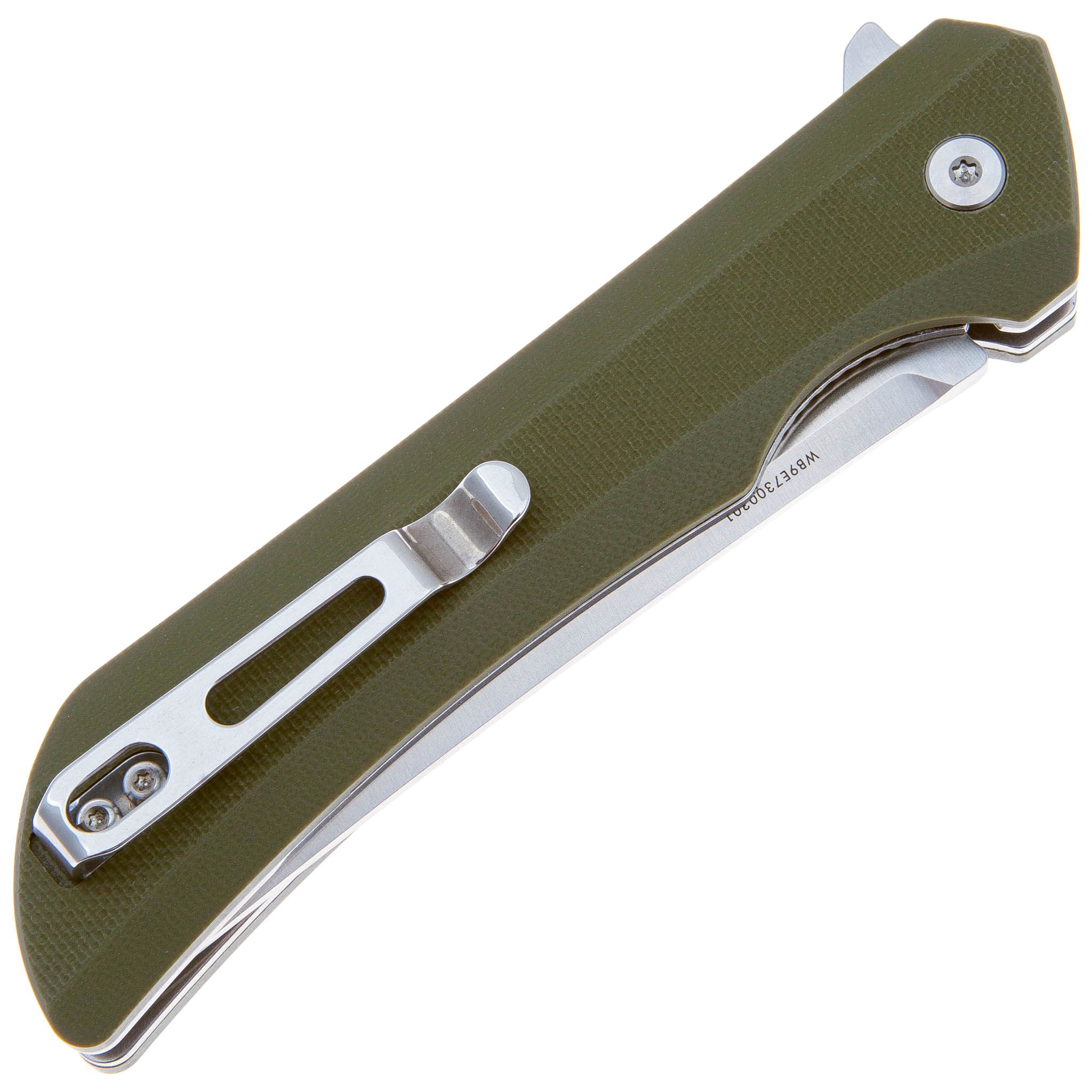 Накладки на лайнерах выполнены из прочного материала G10, рукоять удобную и хорошо лежит в руке. Для ношения ножа в кармане или на ремне предусмотрена стальная клипса.
