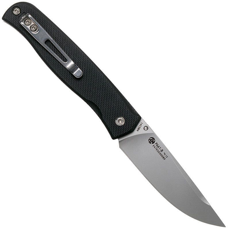 Ruike P661-B — универсальная модель складного ножа на каждый день. Нож оснащен клинком из стали 14C28N, который обладает удачной геометрией. На клинке имеется шпенек, что обеспечивает удобство открытия с помощью одной руки.