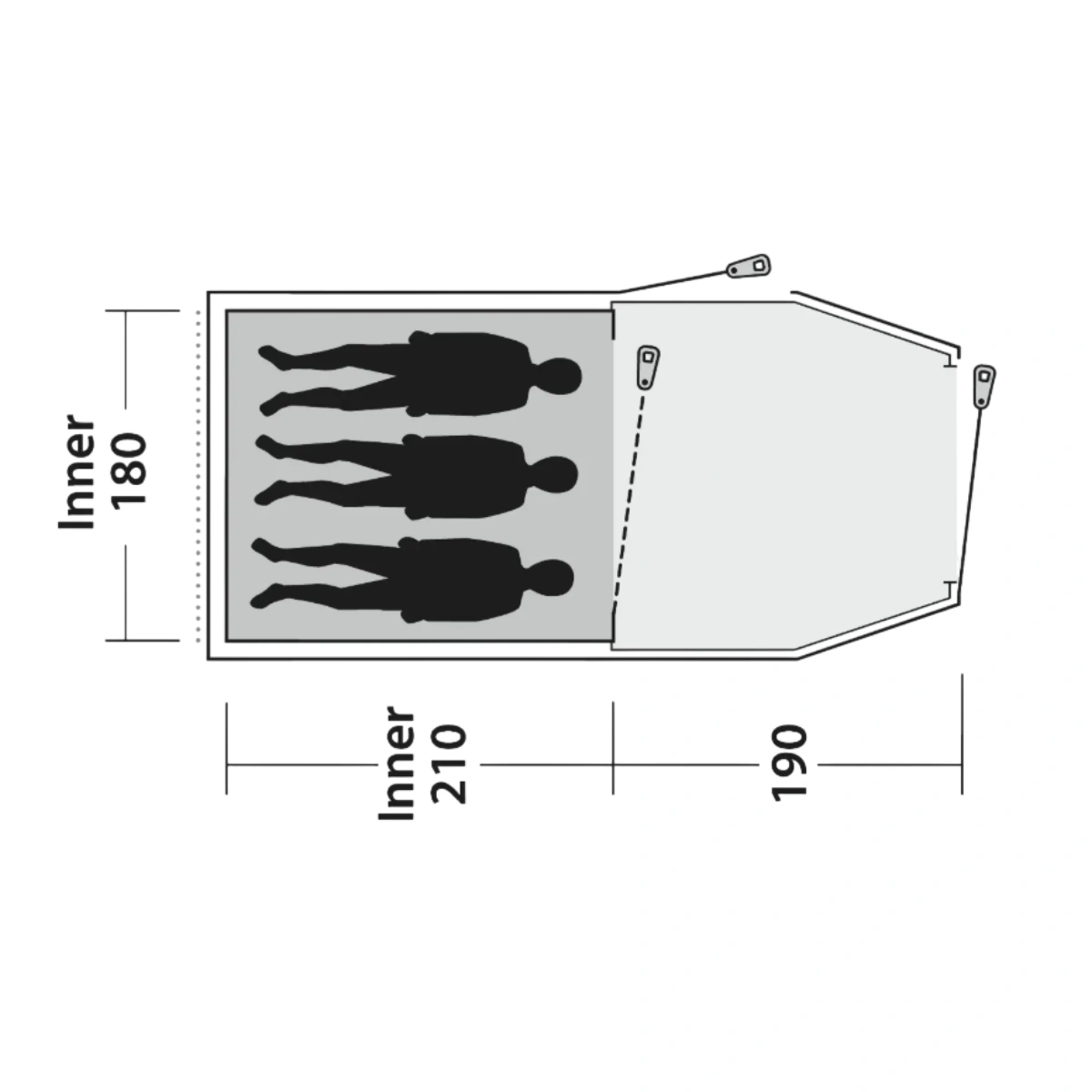 - Внутренняя палатка Dark Inner — выполнена из затемненного материала, который минимизирует проникновение света, обеспечивая комфортный сон ранним утром