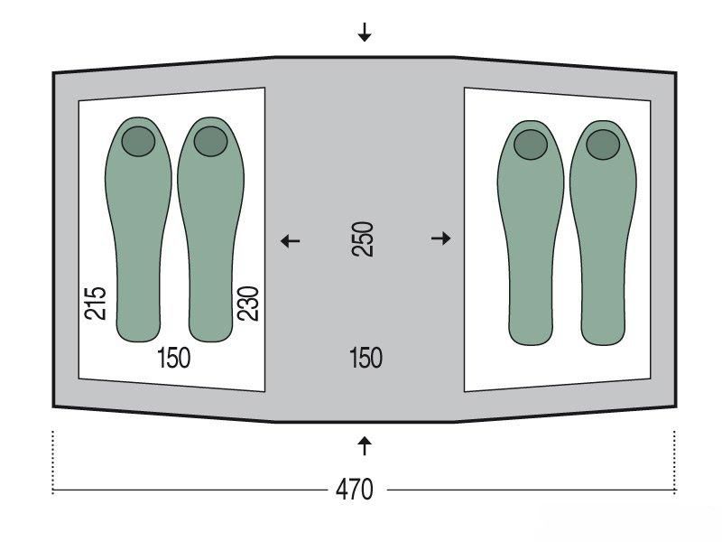 - Размеры внешней палатки — 470 x 250 x 190 см