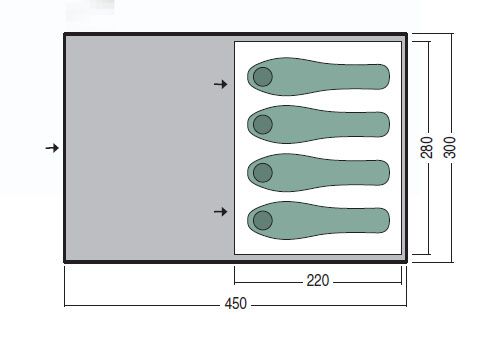 • Размеры внешней палатки — 450 x 300 x 215 см