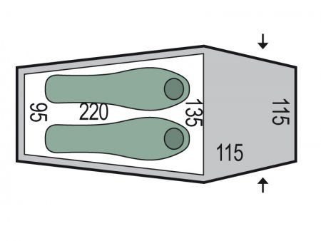 - Размеры внутренней палатки — 220 x 135 x 115 см