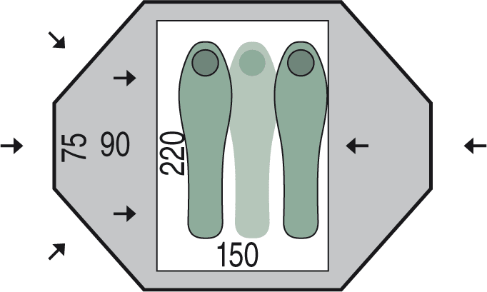 - Количество мест в палатке — 2+1