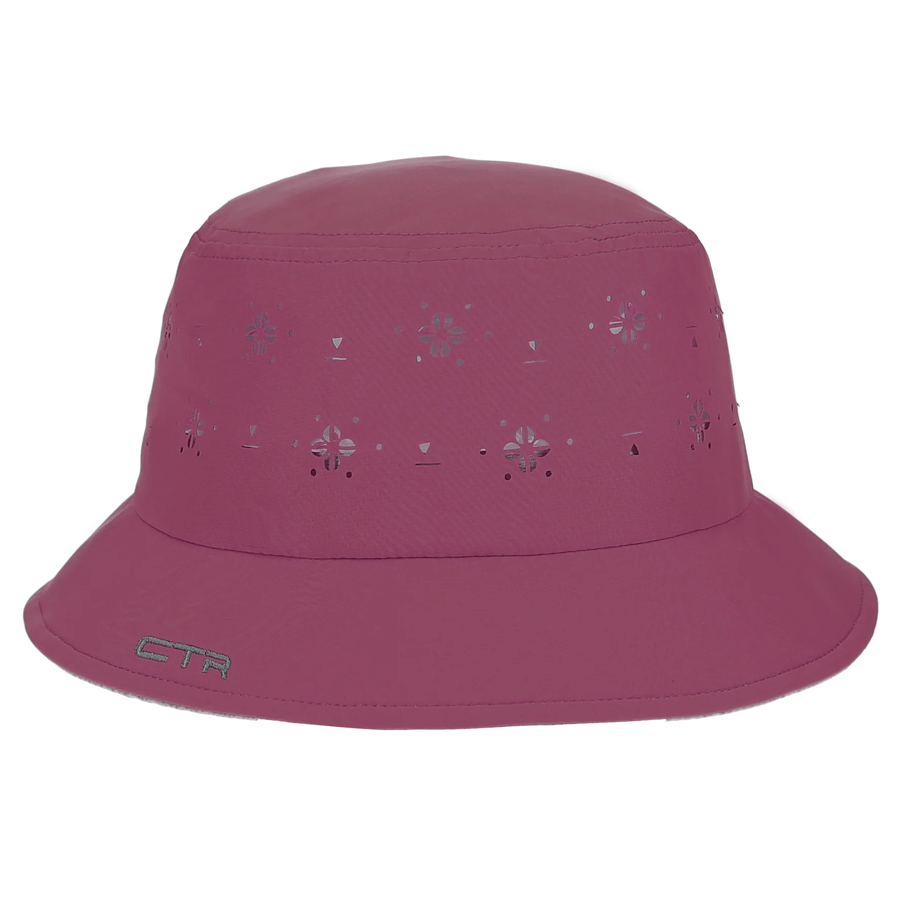 CTR Summit Ladies Bucket — легкая женская панама создана для активного отдыха и путешествий под солнцем. Изготовлена из переработанной ткани HELISHADE с защитой UPF 50+ и влагоотводящими свойствами, обеспечивая надёжную защиту от ультрафиолета и комфорт даже в жаркую погоду.