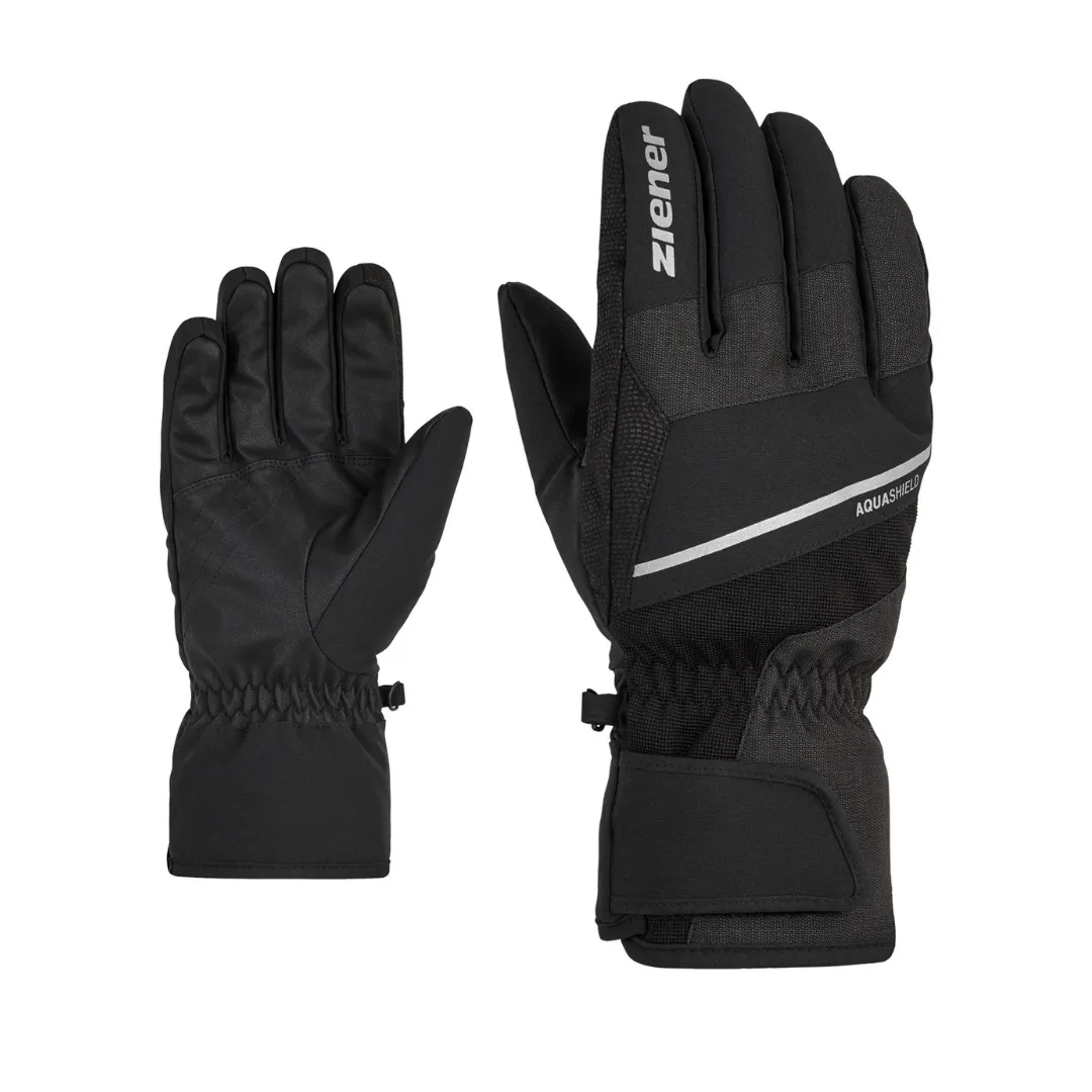 Ziener Gezim — мужские горнолыжные перчатки оснащены водонепроницаемой и ветрозащитной мембраной Aquashield®, обеспечивающей тепло и сухость внутри. Модель не содержит PFC и представлена в версии SOS-ID: QR-код на манжете позволяет экстренным службам получить важную информацию о владельце в случае чрезвычайной ситуации.