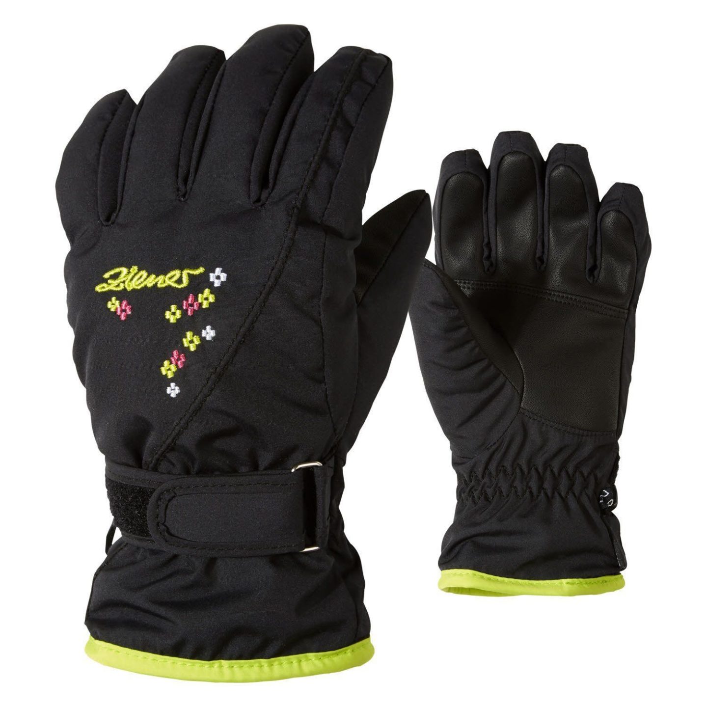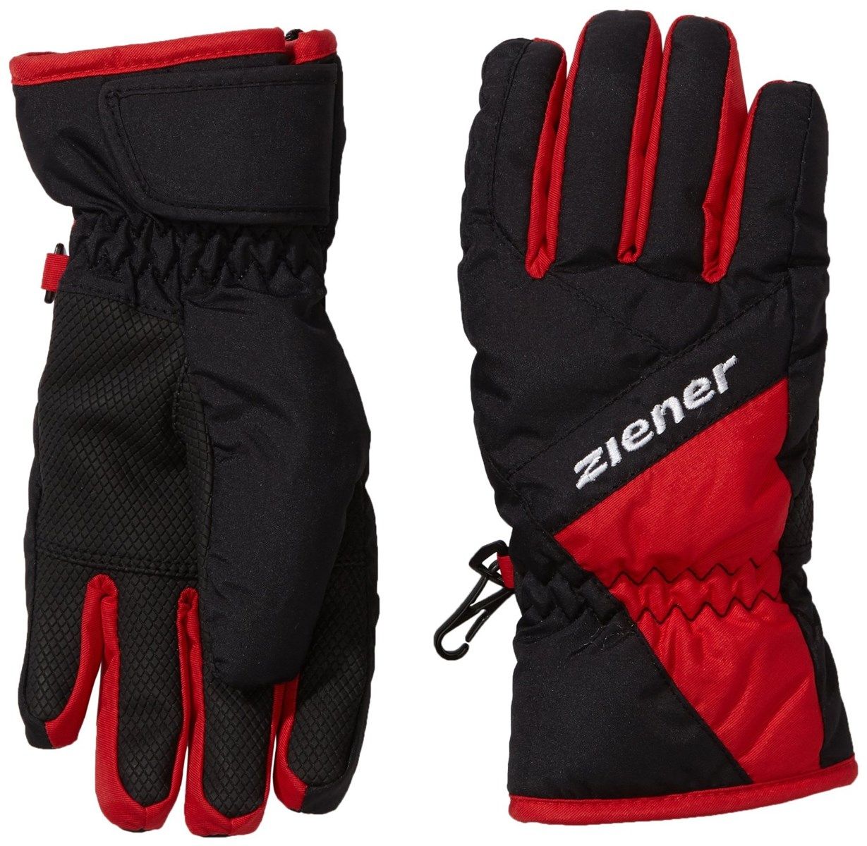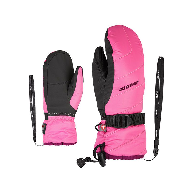 Ziener Leo — перчатки для детей с удлиненными молниями на тыльной стороне ладони. Молнии расстегиваются до кончиков пальцев, благодаря чему перчатки очень легко надевать и снимать. Ремешки также крепят перчатки к запястьям во избежание потери.