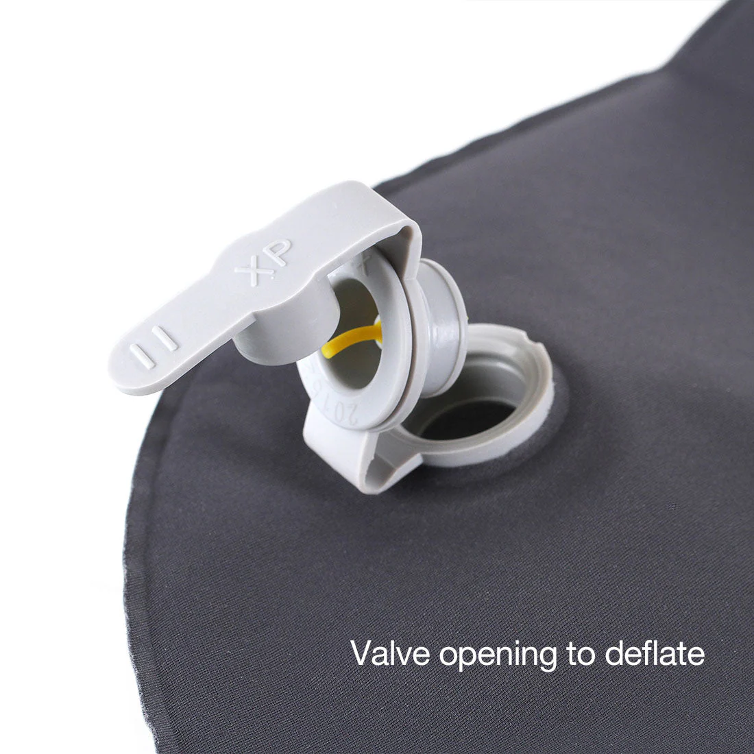 Благодаря клапану двойного действия подушка надувается и сдувается за считанные секунды, позволяя быстро создать удобную зону отдыха в походе, в самолете или в кемпинге.