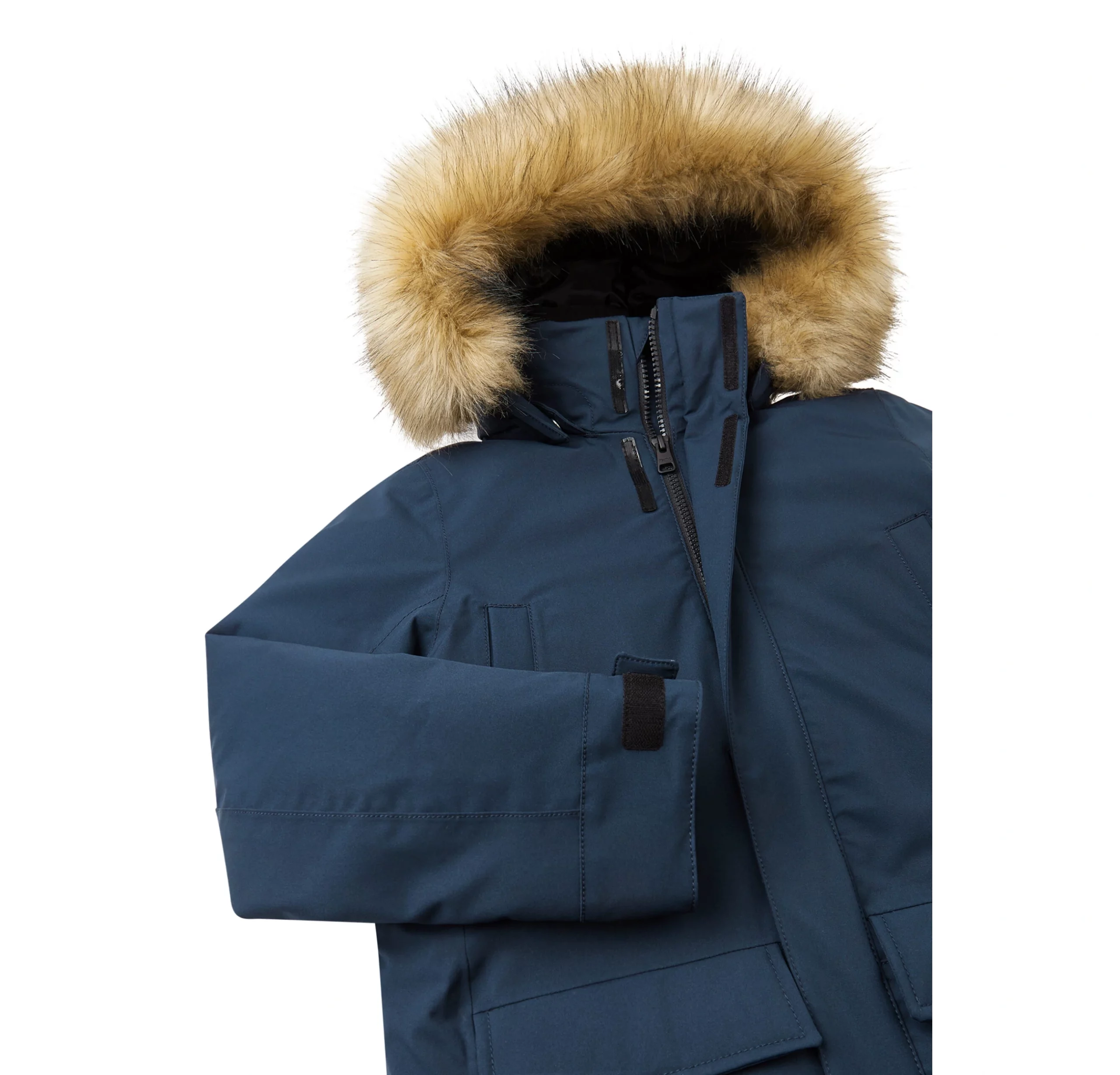 Reimatec Serkku JR – теплая детская куртка-пуховик сшита из ветронепроницаемого и дышащего материала, который, к тому же, абсолютно водонепроницаемый! Все швы в этой стильной куртке проклеены и водонепроницаемы, что гарантирует максимальный комфорт во время зимних прогулок, при любой погоде. Талия и подол этой удлиненной модели легко регулируются, что позволяет подогнать куртку точно по фигуре.
