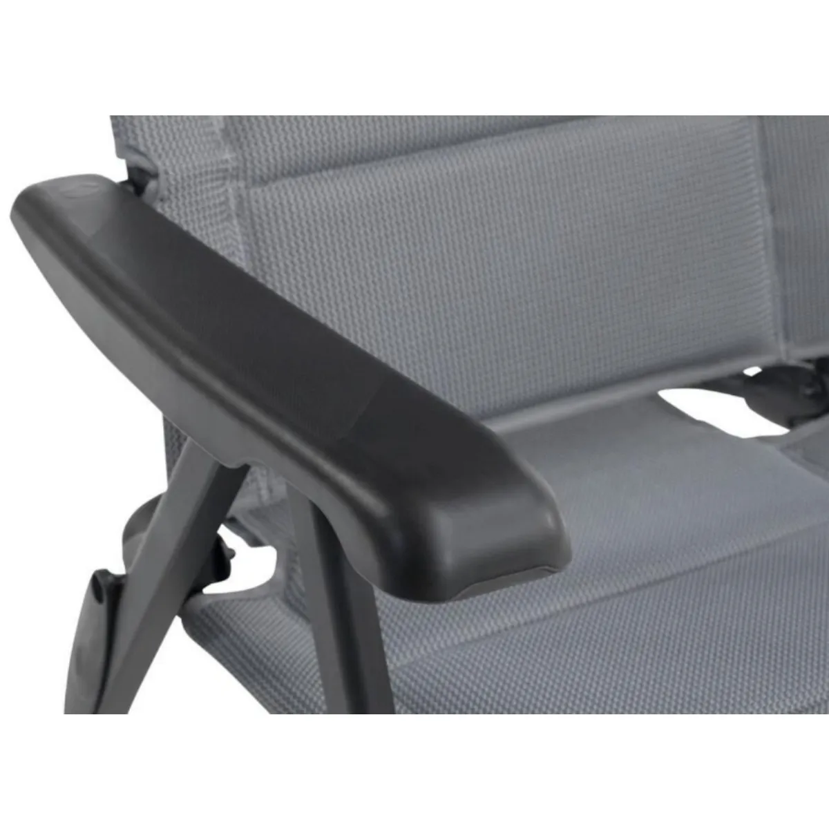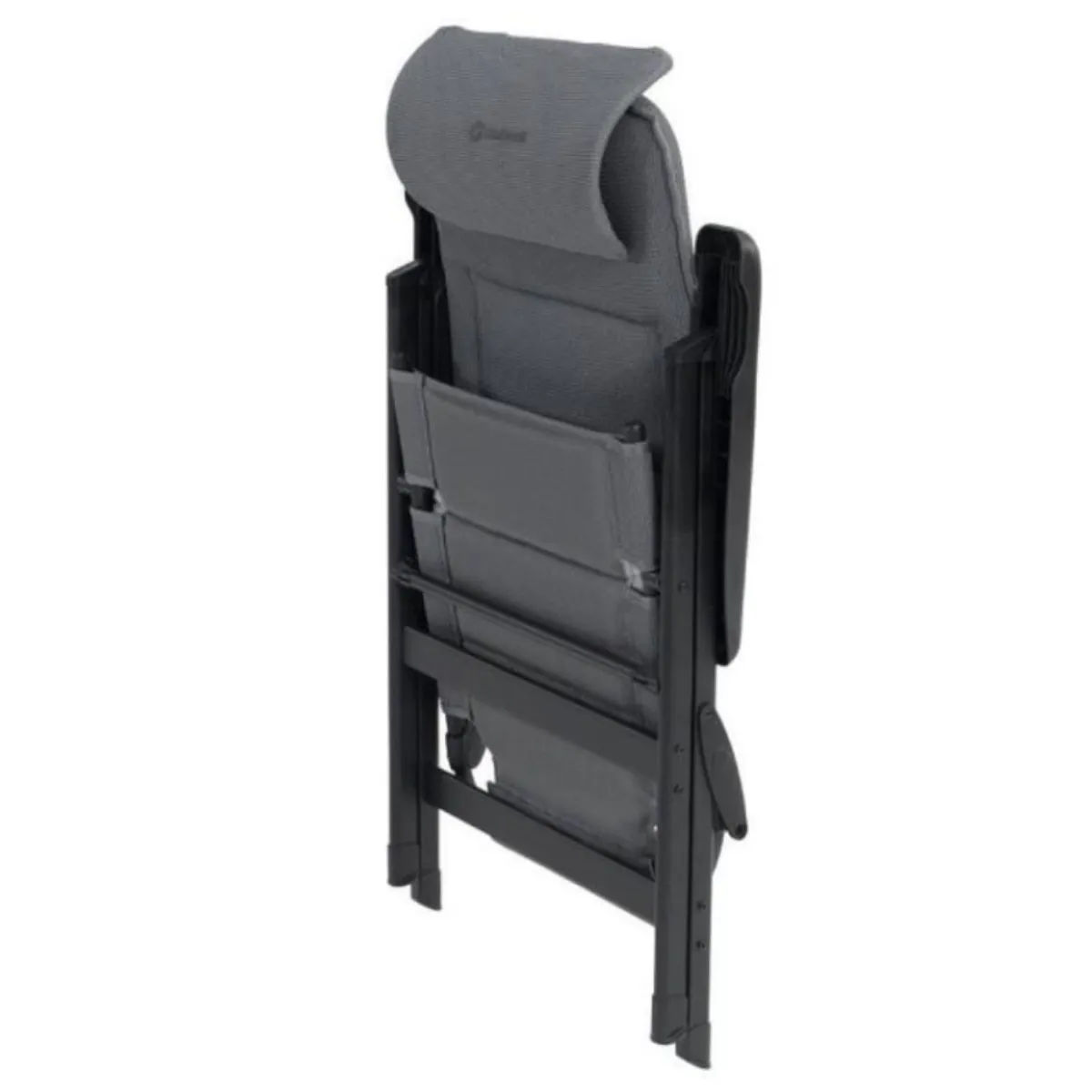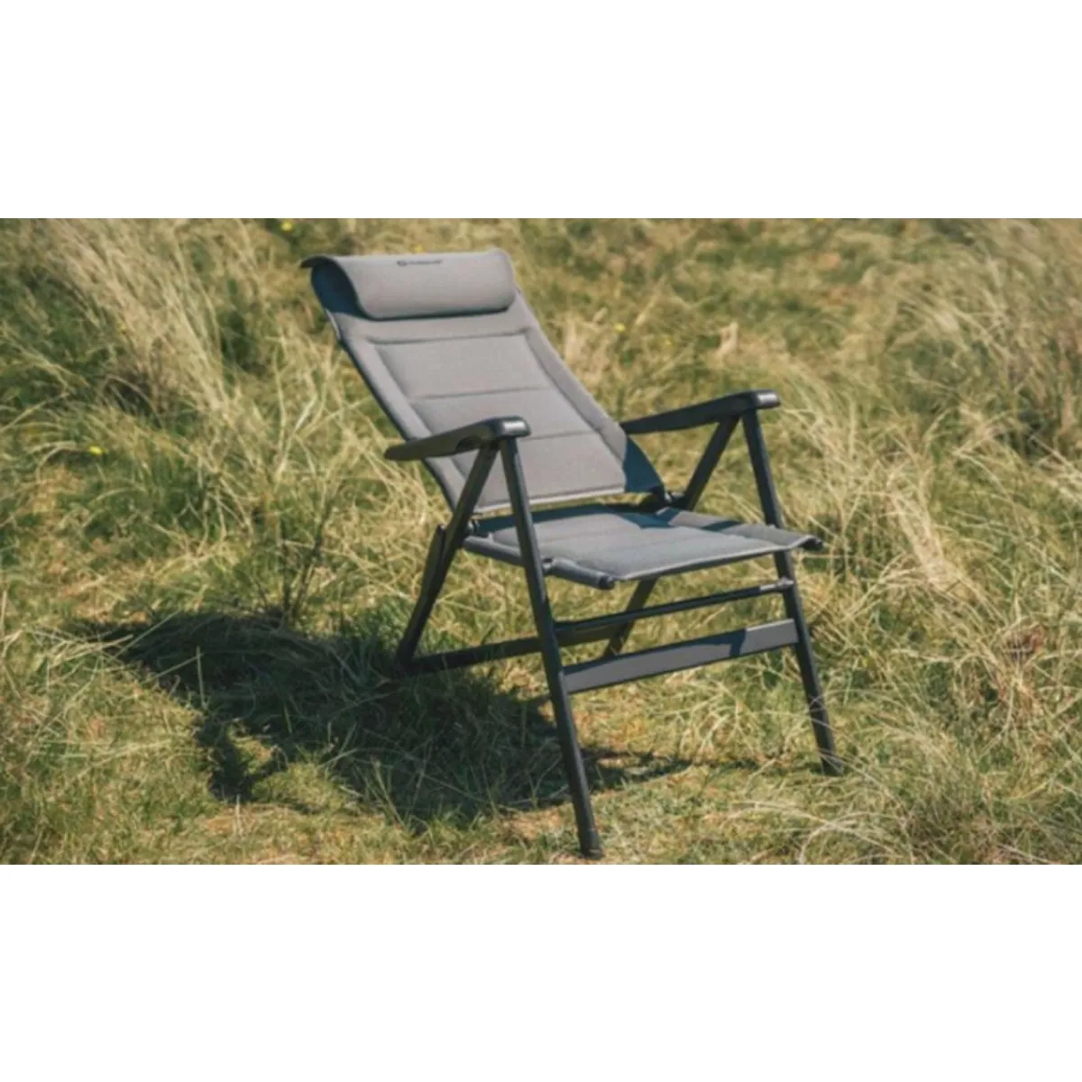 Раскладной стул Outwell Teton — это легкое кресло с высокой спинкой, быстросохнущим наполнителем, семью регулируемыми положениями и съемным подголовником. Оно оснащено эргономичными подлокотниками и поясничной поддержкой для комфортного сидения.