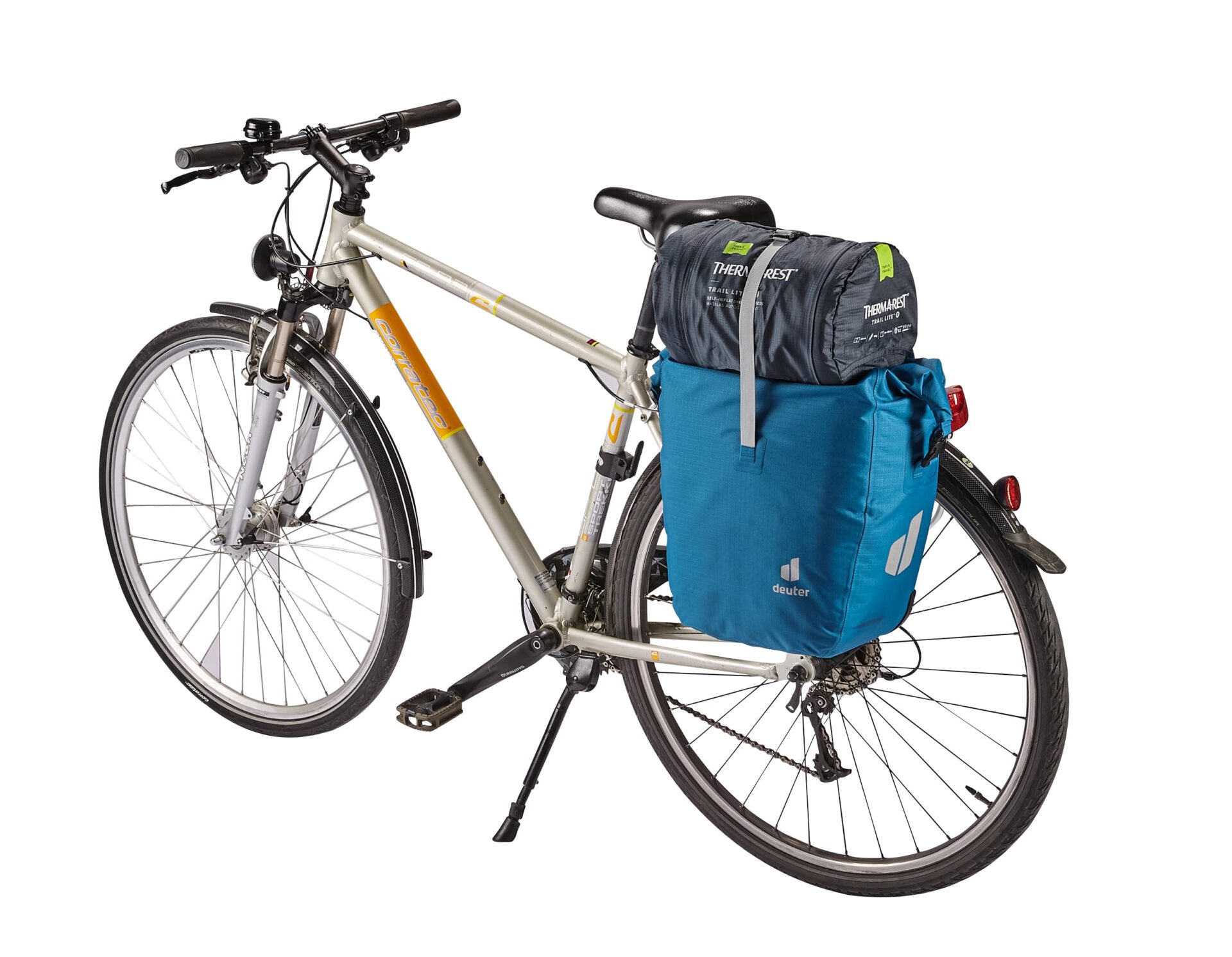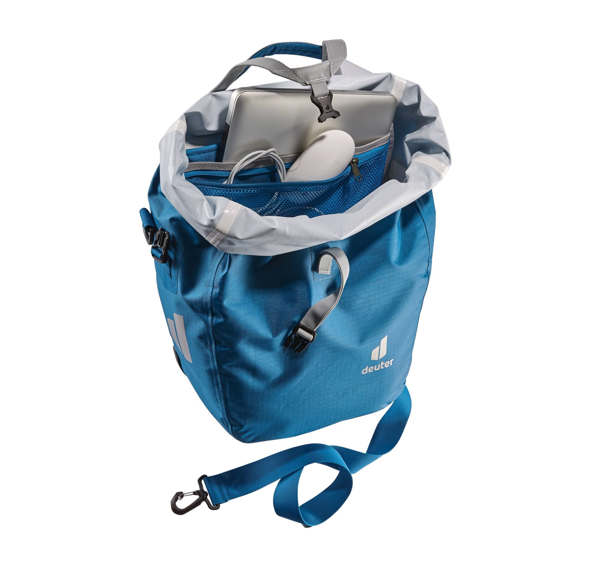 Deuter Weybridge 25+5 — водонепроницаемый кофр защищает такие вещи, как снаряжение для спорта и отдыха или дорожный багаж, от дорожных брызг и дождя. Закручивающаяся крышка с двусторонней молнией позволяет увеличить объем на 5 литров. Недавно разработанная компанией Deuter быстросъемная система BagFix позволяет вам спокойно крутить педали, при этом основная нагрузка приходится на велосипед, а на спине ничего нет. Быстро потяните за ручку, и сумка отсоединена и готова к использованию в качестве сумки через плечо. А благодаря съемному плечевому ремню и регулируемой ручке для захвата/застегивающемуся ремню, который служит ремнем для снаряжения, чтобы прикрепить спальный коврик или куртку, а также встроенному органайзеру, возможности этой сумки просто безграничны.