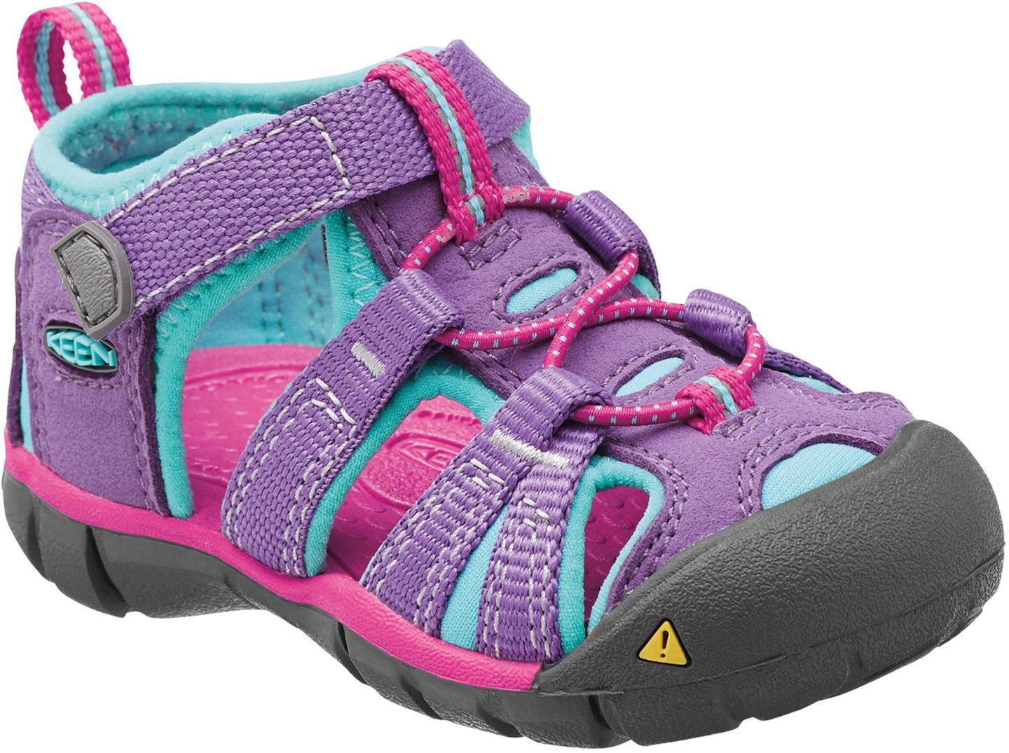 Сандалии Keen Seacamp II CNX созданы специально для детей, выполнены по технологии KEEN.CNX, которая обеспечивает максимальную гибкость и свободу ногам. Верх сандалий из полиэстера, стелька с микрофиброй и гидрофобная сетка в области соприкосновения со стопой делают эту обувь устойчивой к сырости. Поэтому ее можно использовать в различных водных видах активностей. Внутренняя часть этой модели выполнена из текстиля. Дополнительный комфорт обеспечивает съемная стелька из синтетического материала. Анатомическая промежуточная подошва из EVA для амортизации и гибкости, плюс TPU стабилизатор предотвращающий скручивание, надежно сбережет стопы от травм. Усиление в области пальцев ног KEEN.PROTECT обеспечит защиту от неожиданных ударов. Резиновая подошва с разнонаправленным рисунком протектора с мелкими прорезями обеспечивает сцепление с мокрой или сухой поверхностью и не даст поскользнуться. Подошва повторяет контуры ноги для достижения максимального комфорта и удобства. Эта модель – отличный вариант как для города, так и для прогулок на природе в жаркие дни.