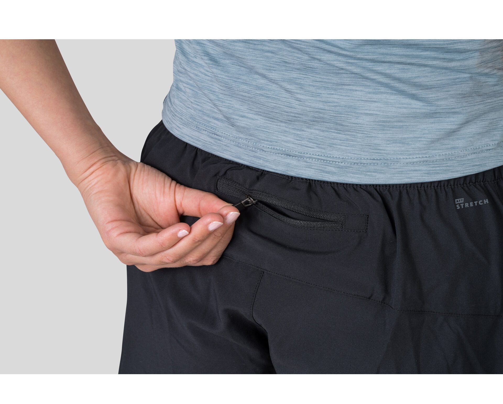 Hannah Paloma — женские шорты для бега изготовлены из функционального синтетического материала AFT Stretch с добавлением стрейч-волокна. Они очень удобны в носке и обеспечивают максимальную свободу движений во время бега. Пояс на талии выполнен в виде эластичной ленты, а затянуть пояс можно с помощью шнурка. Альпийский крой хорошо подходит для большинства типов фигуры. Вы можете удобно спрятать свои мелкие вещи в заднем кармане на молнии или во внутреннем кармане. Благодаря светоотражающим элементам вы будете заметны даже на лесной тропе или в сумерках.