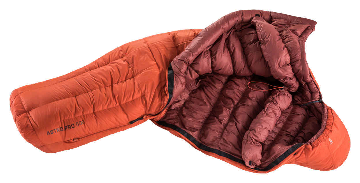 Спальный мешок Deuter Astro Pro 600 SL отличный пуховой спальник для экстремальных походов. Прекрасная изоляция и отсутствие холодных зон обеспечиваются благодаря инновационной конструкции PowerBox. Натуральный пух высокого качества быстро нагревает внутреннее пространство и сохраняет тепло. Наружная ткань полностью водоотталкивающая. Три камеры в области ног Ergo Foot более плотно наполнены пухом. Функциональный капюшон ThermoHood хорошо укрывает голову, защищая от холода. Воротник дополнительно утеплен, застегивается на липучку, затягивается эластичным шнуром. Вдоль молнии проклеена специальная лента для защиты от заедания. Внутри спальника предусмотрен карман для документов и ценных вещей.