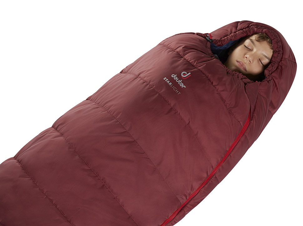 Спальный мешок Deuter Starlight — детский летний спальный мешок с синтетическим утеплителем. Главным преимуществом модели является то, что она растет вместе с ребенком — длину спальника можно увеличить, расстегнув специальную молнию в области ног.