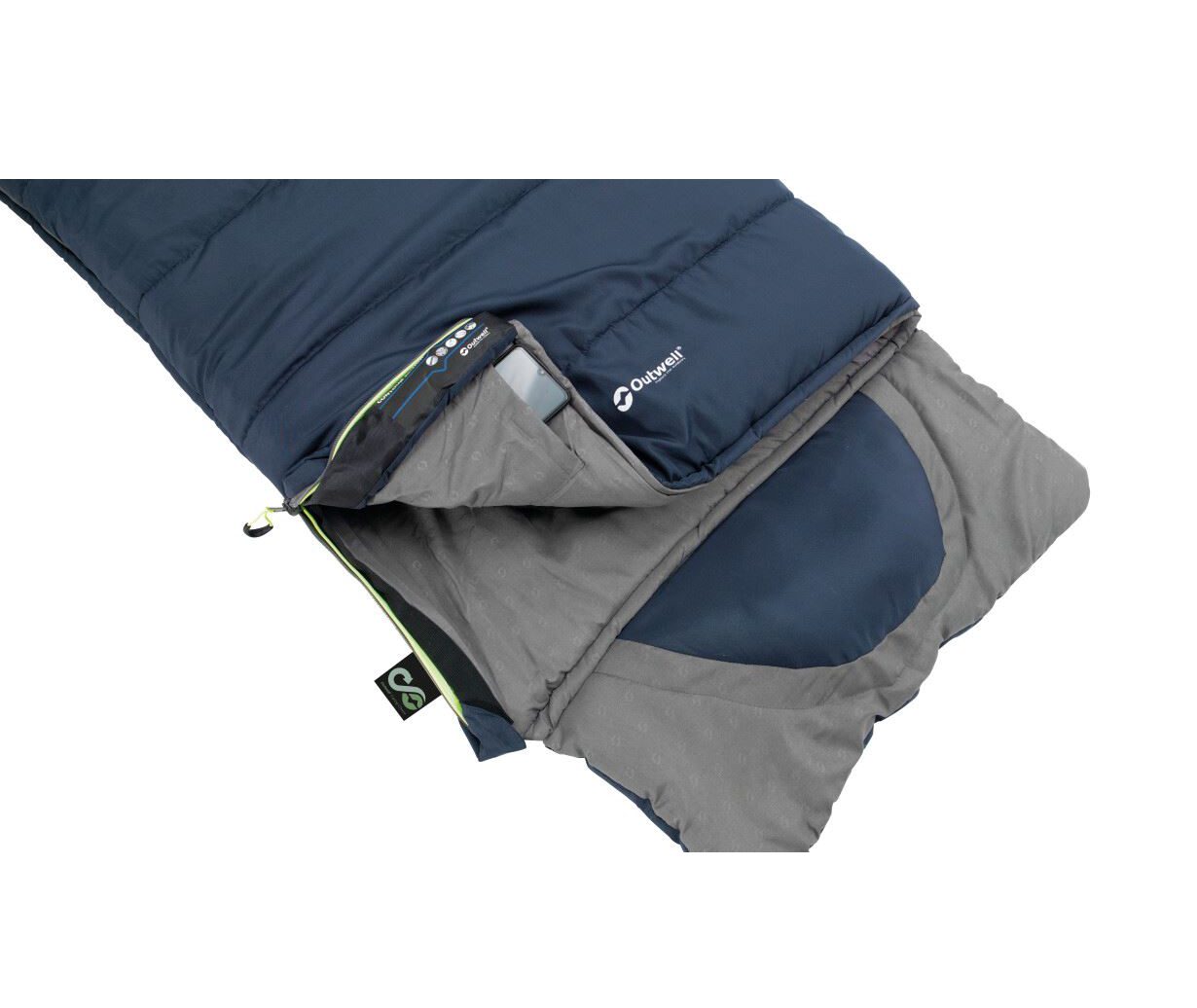 Outwell Contour Junior — детский спальный мешок обладает всеми впечатляющими характеристиками взрослых спальников. Мягкий и теплый матераил, с контрастной ярко-синей внешней и серой внутренней отделкой, он идеально подходит для летнего семейного отдыха. Встроенная подушка облегчает упаковку, а во внутреннем кармане можно хранить важные мелочи.