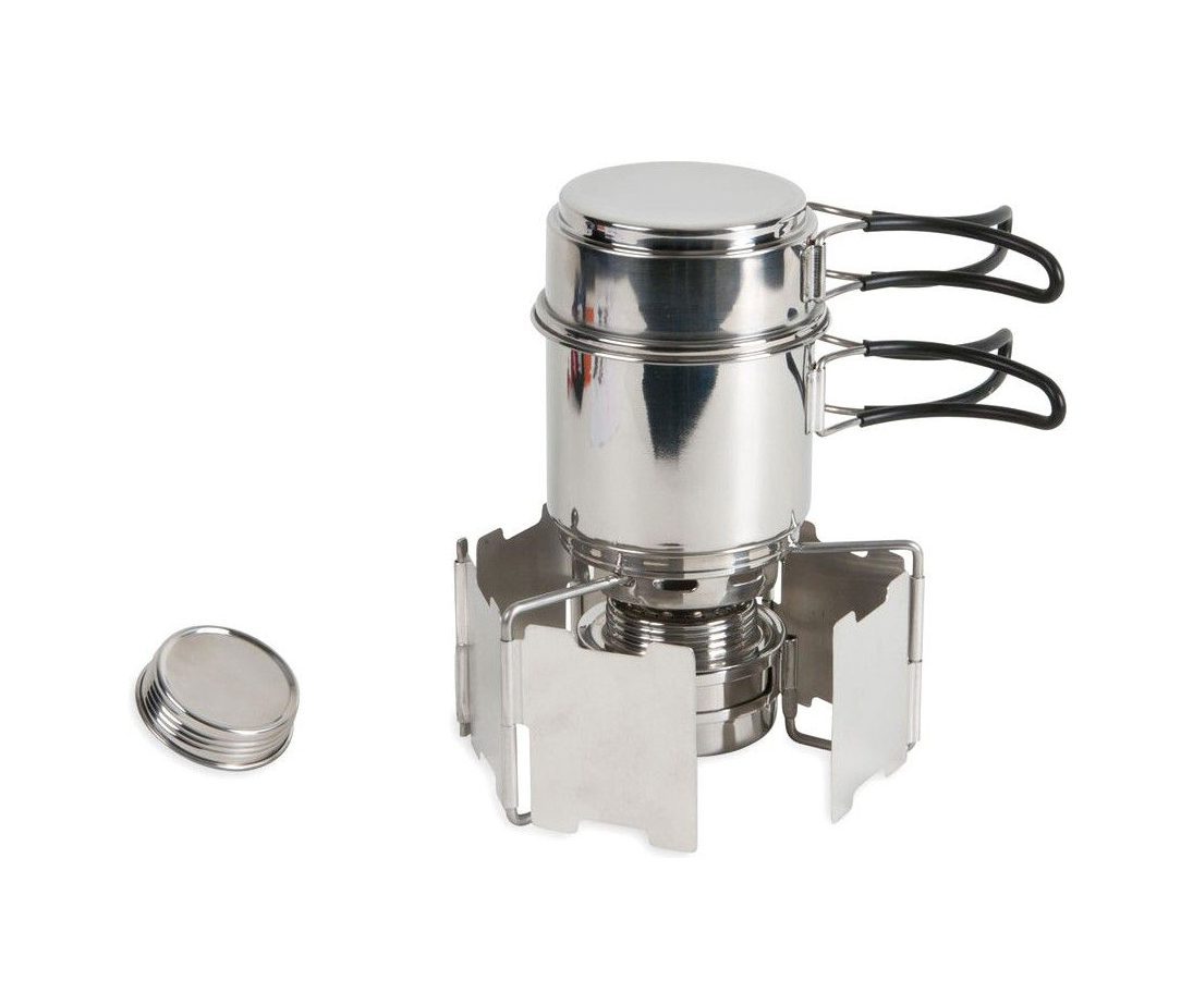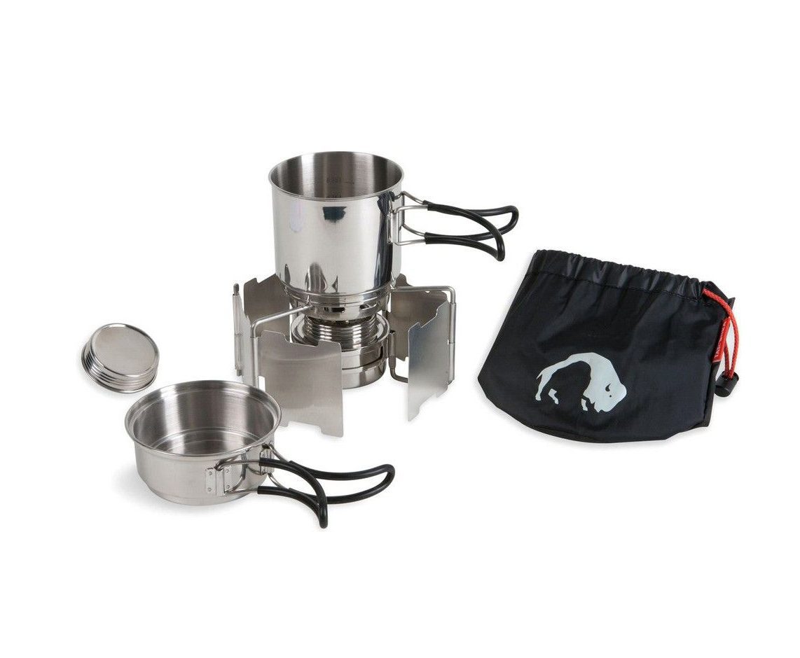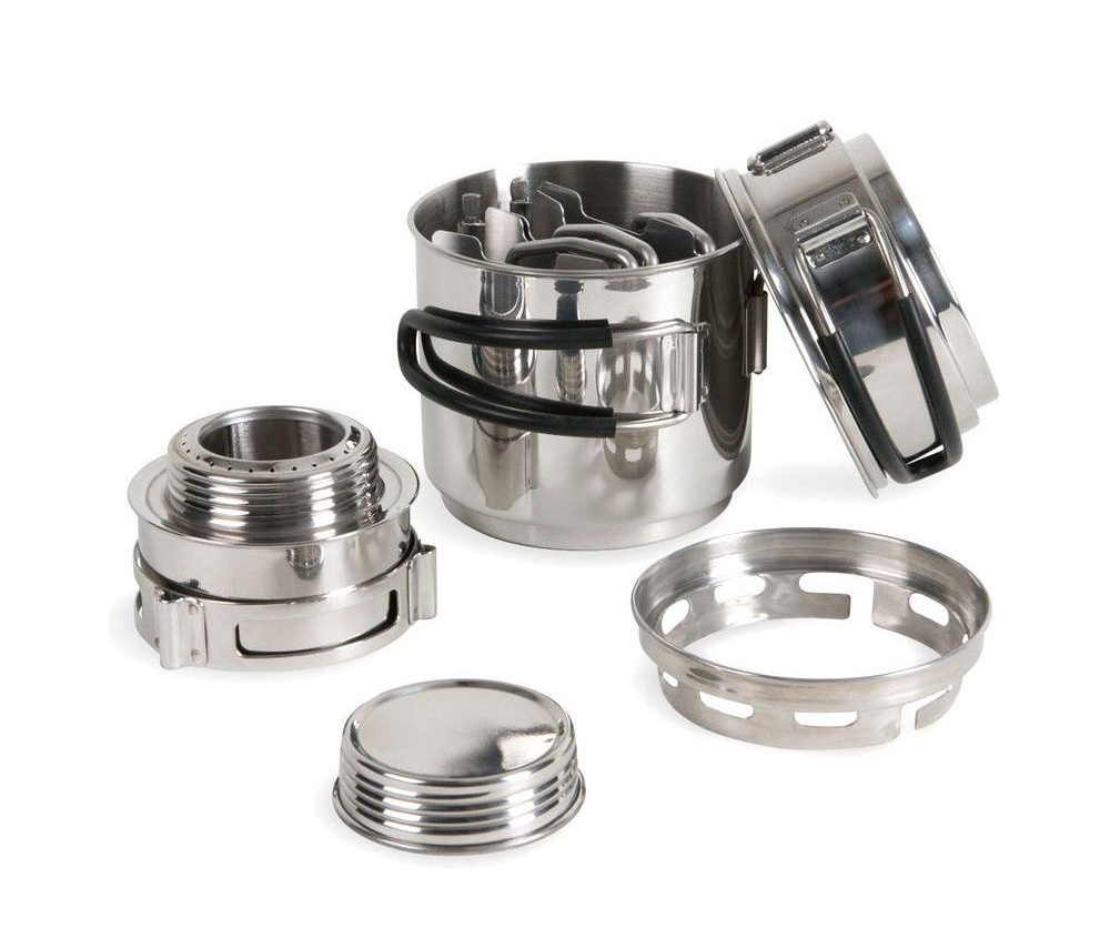 Tatonka Alcohol Burner Set — набор, состоящий из спиртовой горелки и посуды. Популярную горелку Alcohol Burner теперь можно не собирать частями, а купить в наборе, где в ней идут емкости для приготовления пищи, ветрозащита, подставка, регулятор пламени и мешок для хранения.