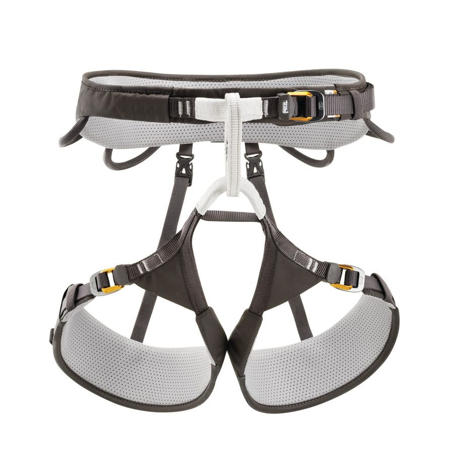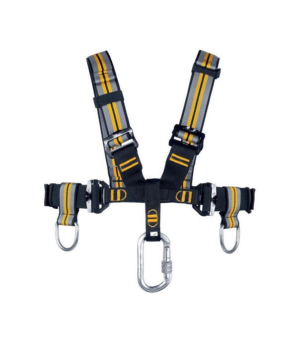 - Лямка, контактирующая со страховочной петлей, оснащена антиабразивным металлическим изделием