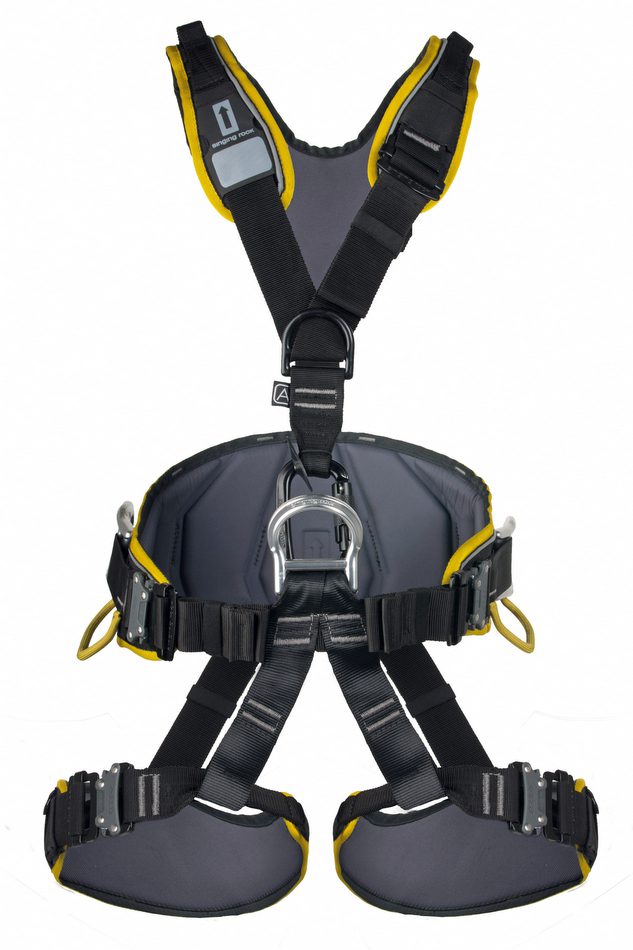 Singing Rock Profi Worker 3D speed полностью регулируемая универсальная страховочная привязь для канатного доступа с широкими комфортными подкладками на поясном ремне, ножных петлях и плечевых ремнях.