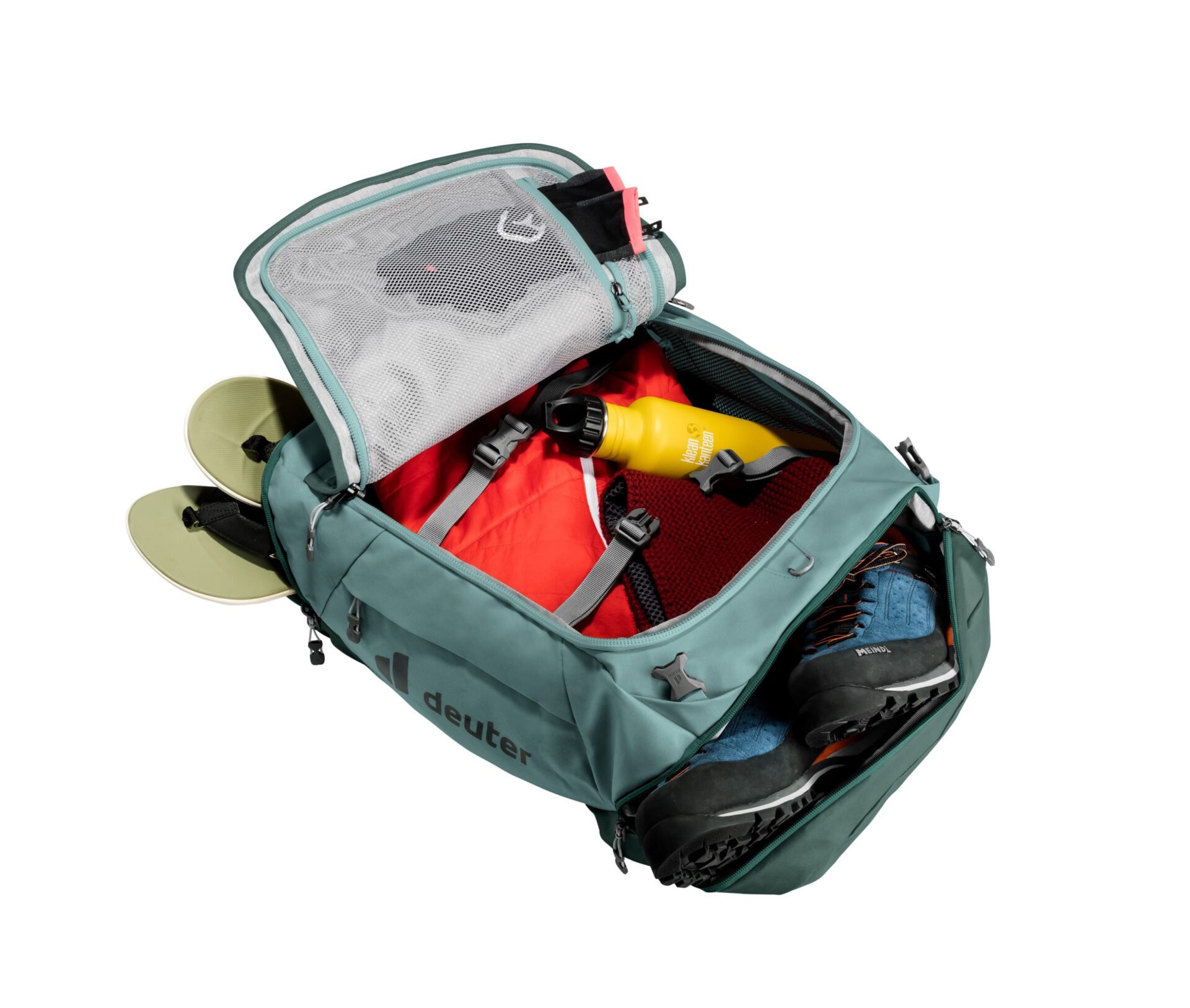 Deuter Aviant Duffel Pro 40 — это функциональная и надежная, вместительная сумка для поездок. Для максимального удобства и универсальности, в случае необходимости, ее можно удобно переносить как рюкзак на плечах. Еще одним приятным бонусом является интегрированный съемный рюкзак небольшого объема, который можно использовать в качестве ручной клади или для передвижений в городе.